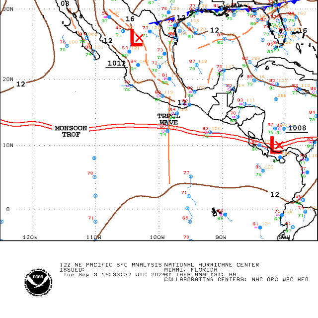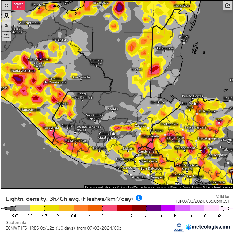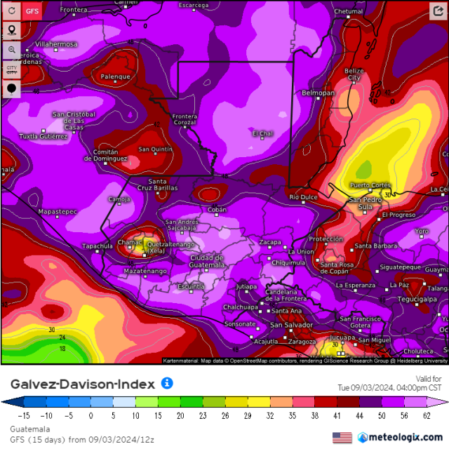 Acercamiento de la vaguada monzónica favorecerá abundante ingreso de humedad y alta probabilidad de lluvias y tormentas en varios sectores del país, con énfasis del centro al sur, áreas de las Verapaces, norte y sectores de oriente en la tarde y noche, algunas desde mediodía en adelante o antes.