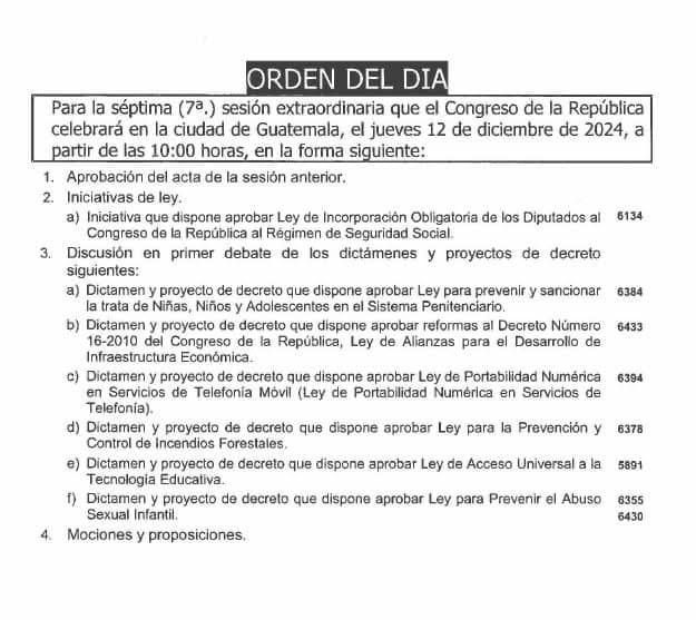 También en primera discusión irán iniciativa de Ley como para prevenir y sancionar la trata de niñas, niños y adolescentes en el sistema penitenciario. Igual van cuatro iniciativas más, pero curiosamente no van para segunda lectura ni tercera. De una vez se van al punto de mociones y proposiciones para terminar la plenaria.