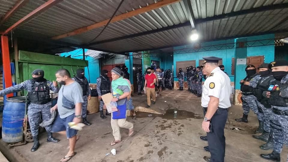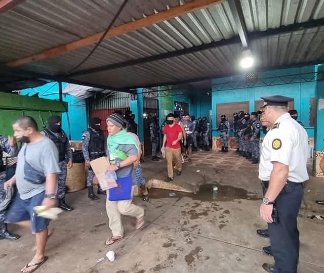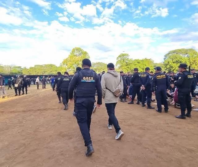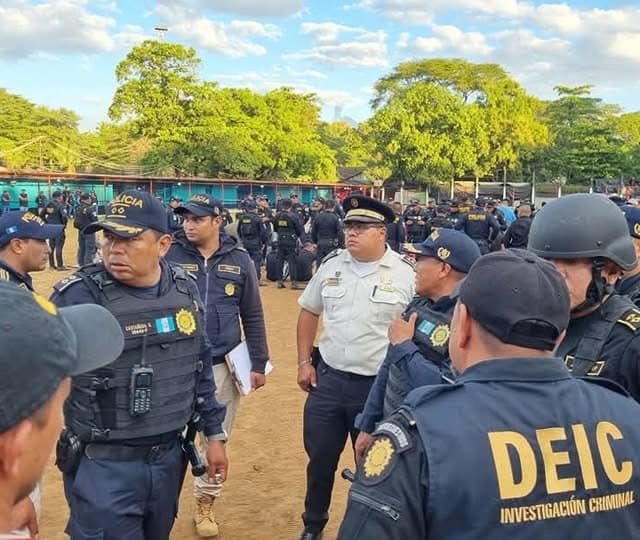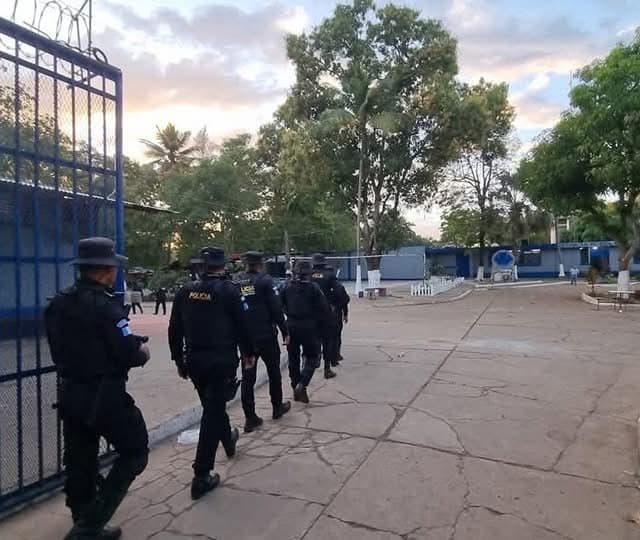 Agentes de la Policía Nacional Civil PNC de diferentes comisarías y unidades especializadas, en apoyo al Sistema Penitenciario, llevan a cabo esta mañana una requisa en La Granja Modelo de Rehabilitación Canadá, Escuintla, con el objetivo de buscar armas de fuego, teléfonos, drogas u otro ilícito.