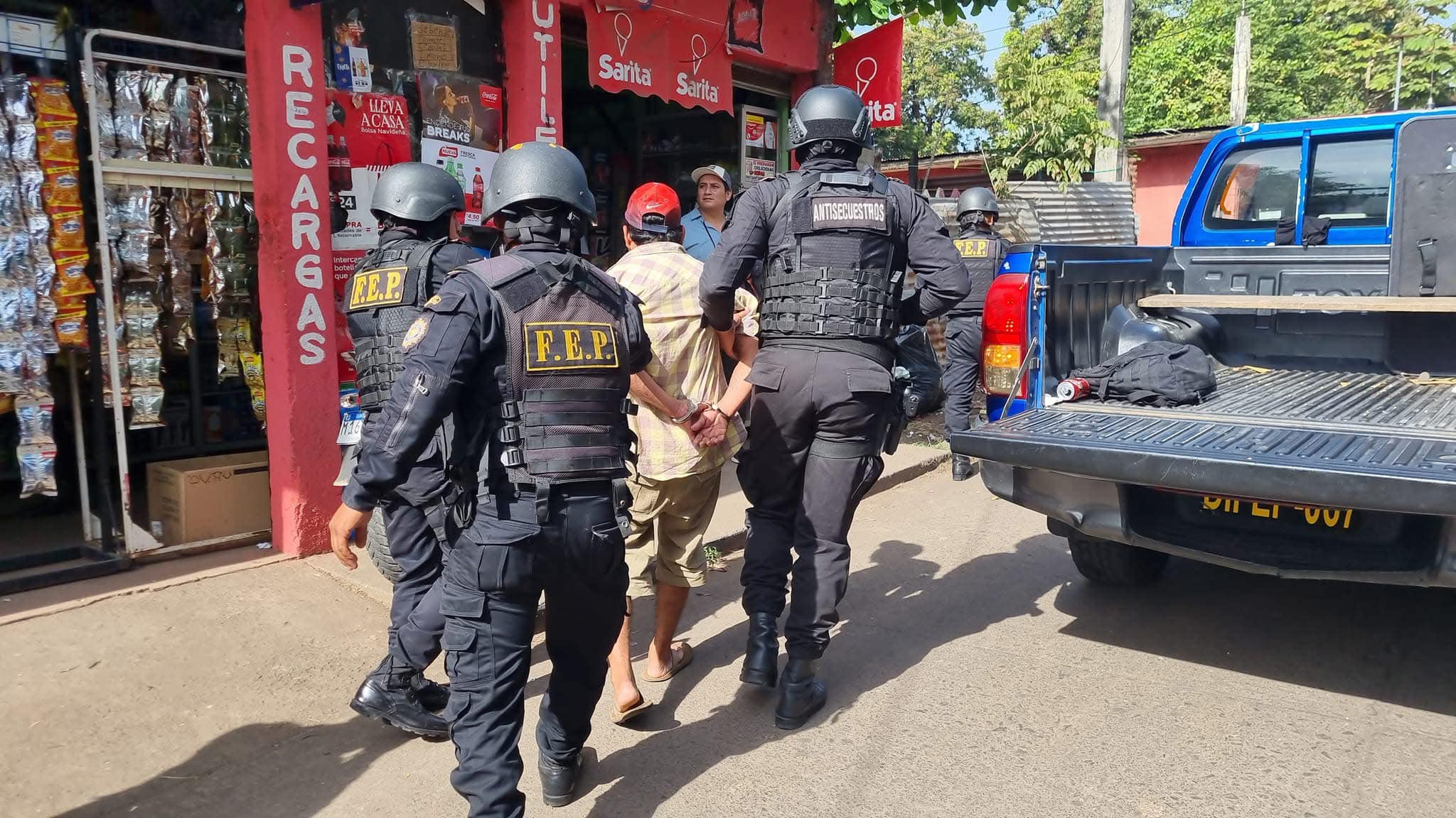 Como resultado se procedió a la captura de José Antonio De la Rosa Campos de 19 años, Blanca Estela Campos Flores de 49 años, Edwin Rolando López García de 33 años, Alexander Solares Ajanel de 24 años, todos presuntos integrantes de una estructura criminal denominada «Los Sureños», dedicada a cometer secuestros, robos, hurtos y extorsiones en ese departamento.