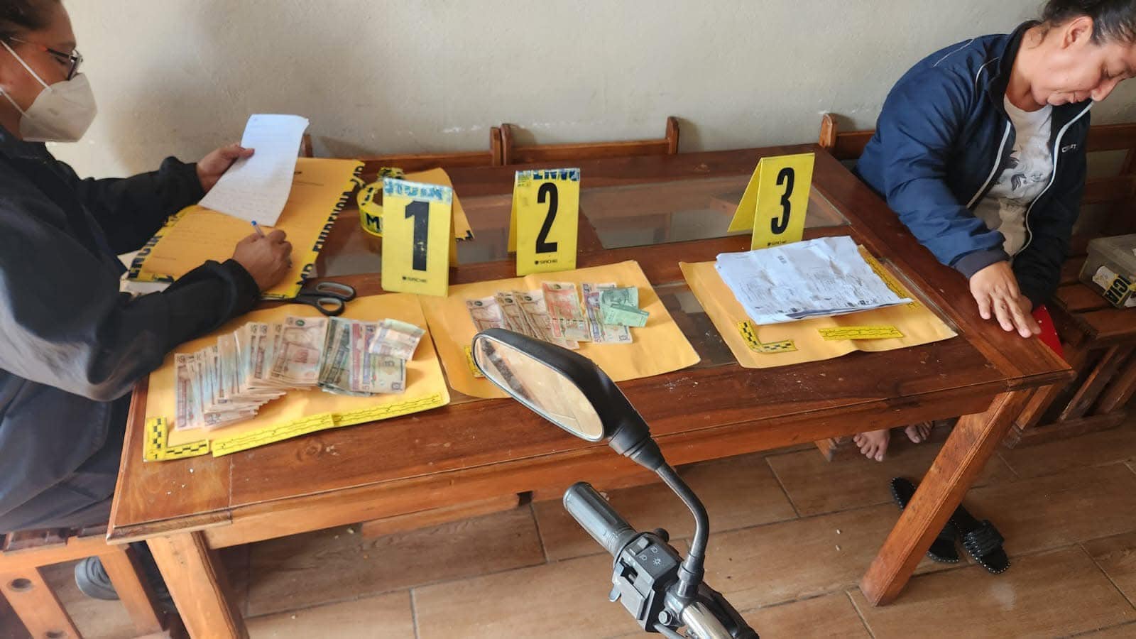 Durante estas diligencias se embalaron tres celulares, prendas de vestir, que según los fotogramas son con los que cuentan los investigadores de la PNC, coinciden con los implicados en ambos casos, así como zapatos, y Q.10,331.