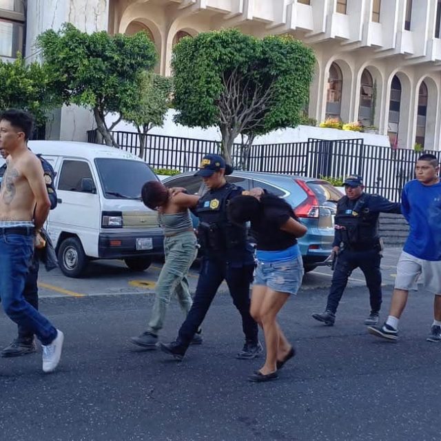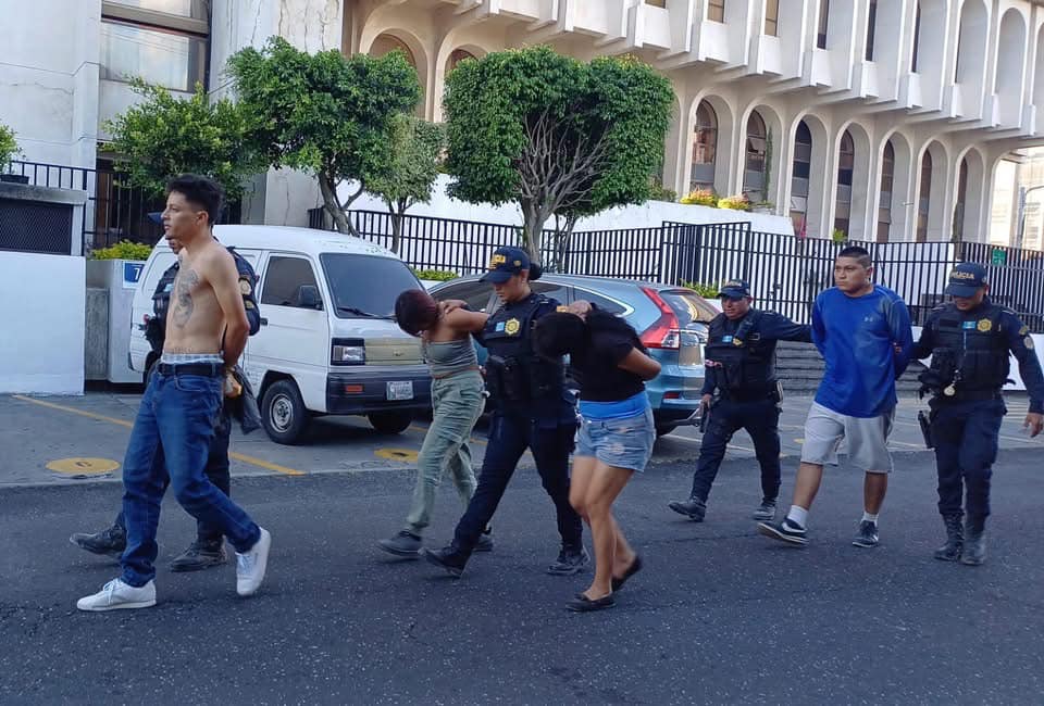Policías de la comisaría 12 en un operativo de alto impacto llevado a cabo en la 33 avenida final, colonia Brisas del Fiscal, Palencia, capturaron a Manuel de Jesús Quel Trigeros de 27 años, alias “Parka”; Alfonso Alex Magdiel López Asencio de 22 años, Evelin Mireya Quel Trigeros de 26 años, Heidy Vanessa Hernández Vásquez de 32 años.