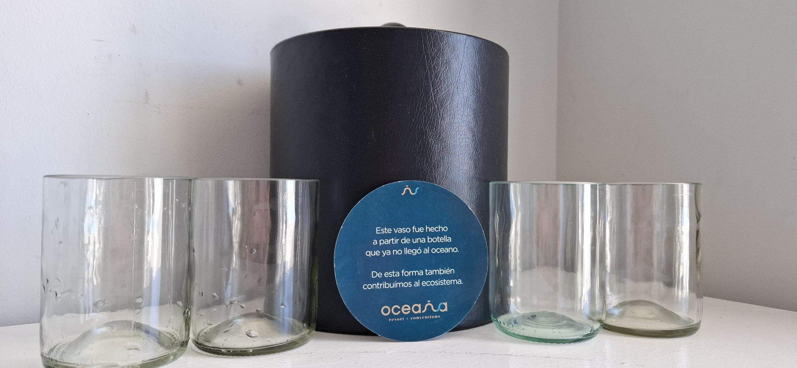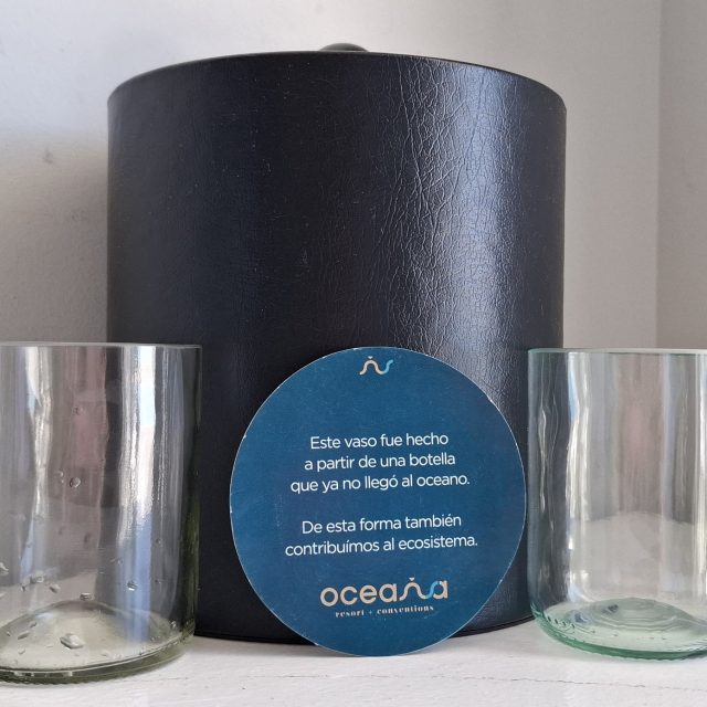Es así como los plásticos, vidrios y cartón se reintegran en la cadena productiva, lo que ha permitido que Oceana anualmente recicle más de 10 mil libras de plástico y 17 mil libras de vidrio. Ejemplo de ello son los vasos que se encuentran en las habitaciones, los cuales son elaborados por la empresa Gronn, a quienes Oceana les brinda las botellas que recicla.