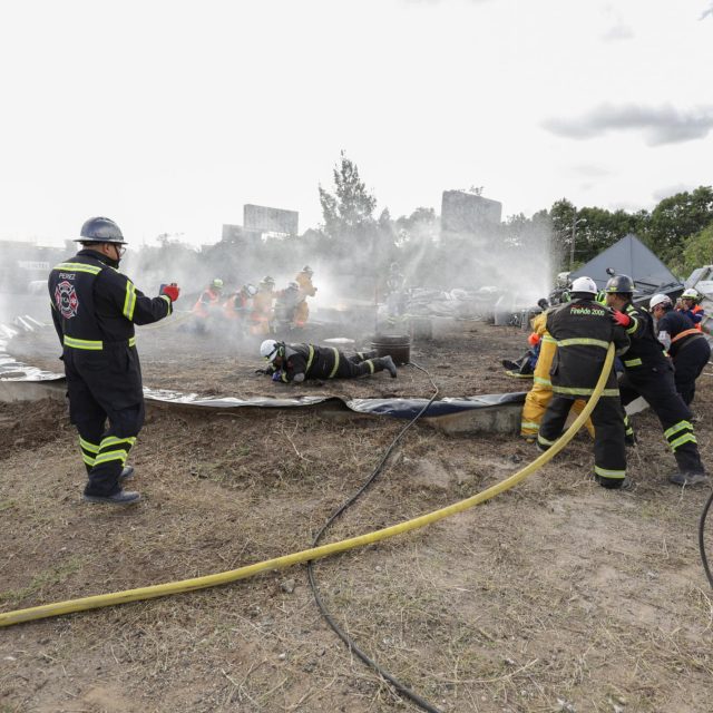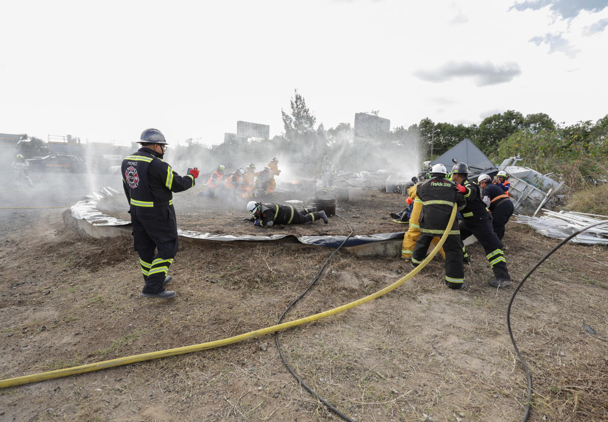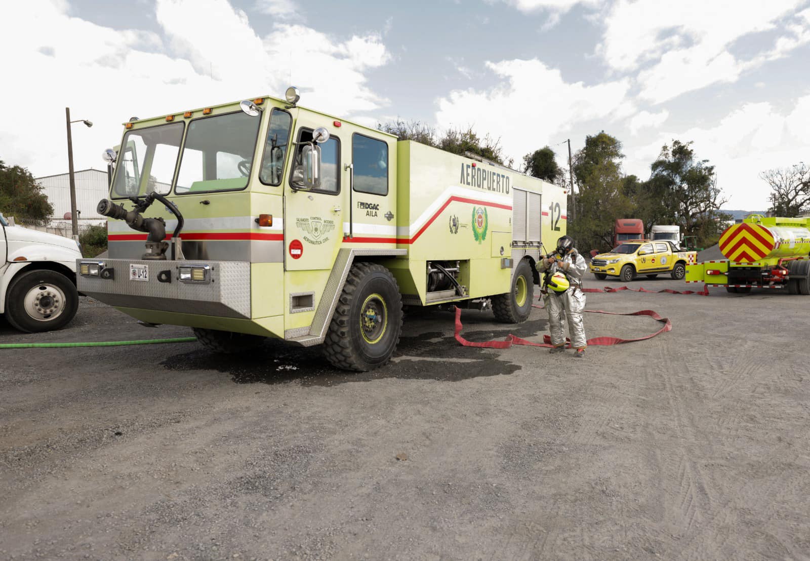 Este ejercicio contó con el apoyo del equipo de Operaciones Aéreas, Agentes de Seguridad Aeroportuaria e integrantes de Servicios y Salvamento de Extinción de Incendio (SSEI) que simularán una emergencia real en la cabecera norte.