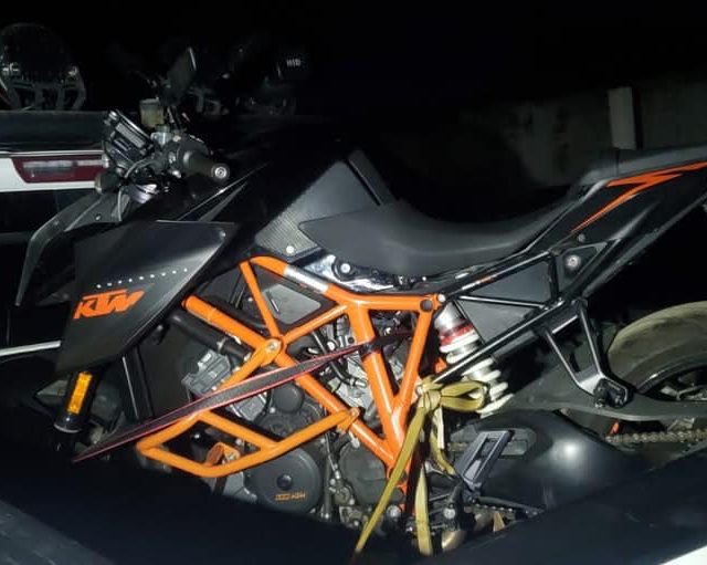 En el kilómetro 148, sector de San Antonio, Suchitepéquez, policías antinarcóticos de la SGAIA detuvieron a los salvadoreños José Héctor Lemus Orellana, 37 años y José Daniel Castillo Rivera, de 45 años, ellos se conducían en el pick up, P 44 E 72, de la República El Salvador, que en la parte de la palangana transporta una motocicleta M 492KPV, marca KTM.