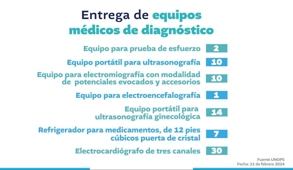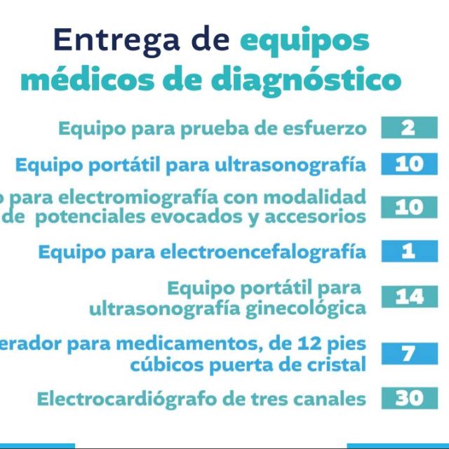 La entrega del equipo médico de diagnóstico incluye equipo portátil para ultrasonografía, equipo de electromiografía, equipo para electroencefalografía, equipo para ultrasonografía ginecológica.