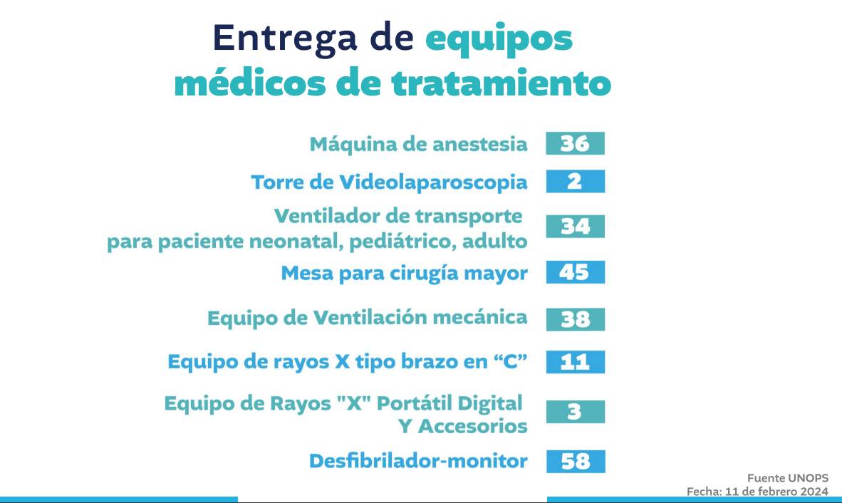 Se han entregado 296 equipos médicos en 10 hospitales ya priorizados cuando nosotros tomamos posesión.