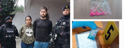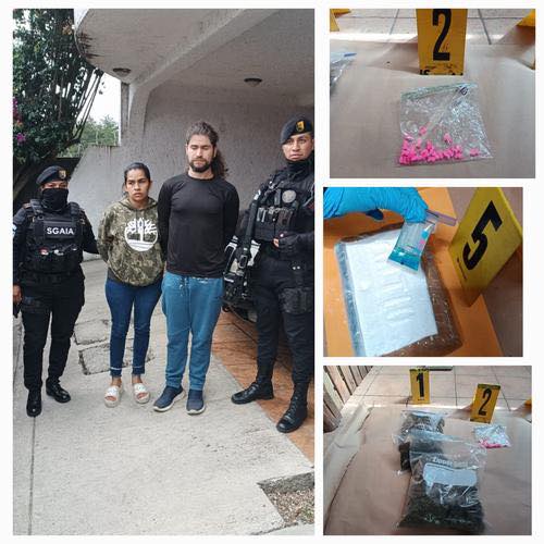En el condominio La Escalada, casa 4 San Lázaro, zona 15, policías de SGAIA en coordinación con fiscales del Ministerio Publico MP capturan a Noé Samuel Oliveros López de 33 años en cumplimiento a orden judicial por el delito de comercio, tráfico, almacenamiento ilícito y asociaciones delictivas y a su esposa Dayani Marleny Barrientos Solórzano de 30 años por el delito de asociaciones delictivas.