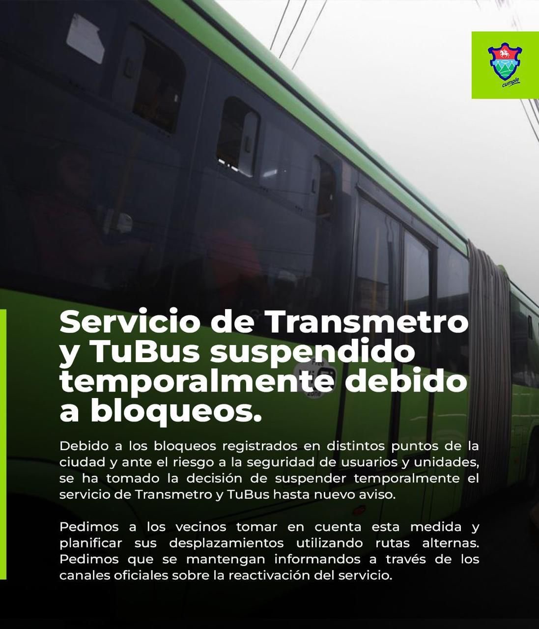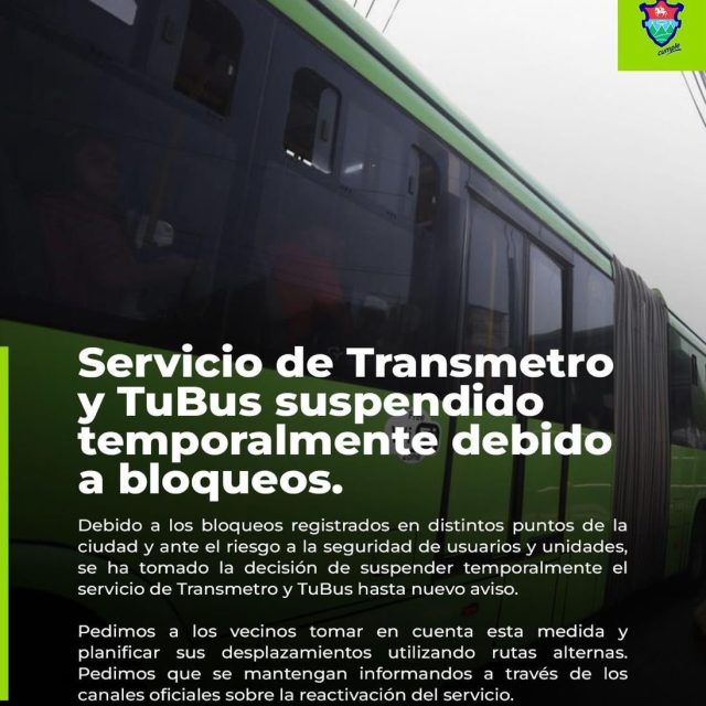 La municipalidad de Guatemala decide retirar los autobuses del transmetro debido a los bloqueos, dejando sin transporte a los citadinos. Todo esto por el rechazo al seguro obligatorio que declarara el gobierno de Bernardo Arévalo por medio del Ministerio de Gobernación que alcanza el repudio de los guatemaltecos en todo el país.