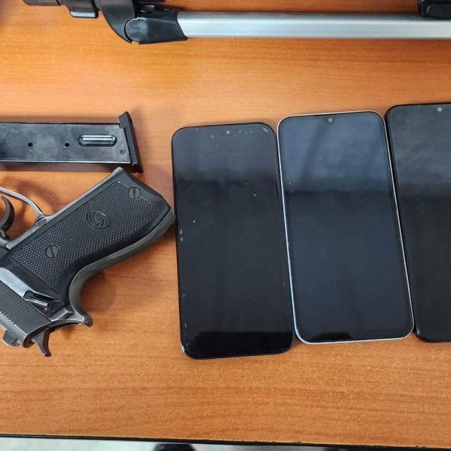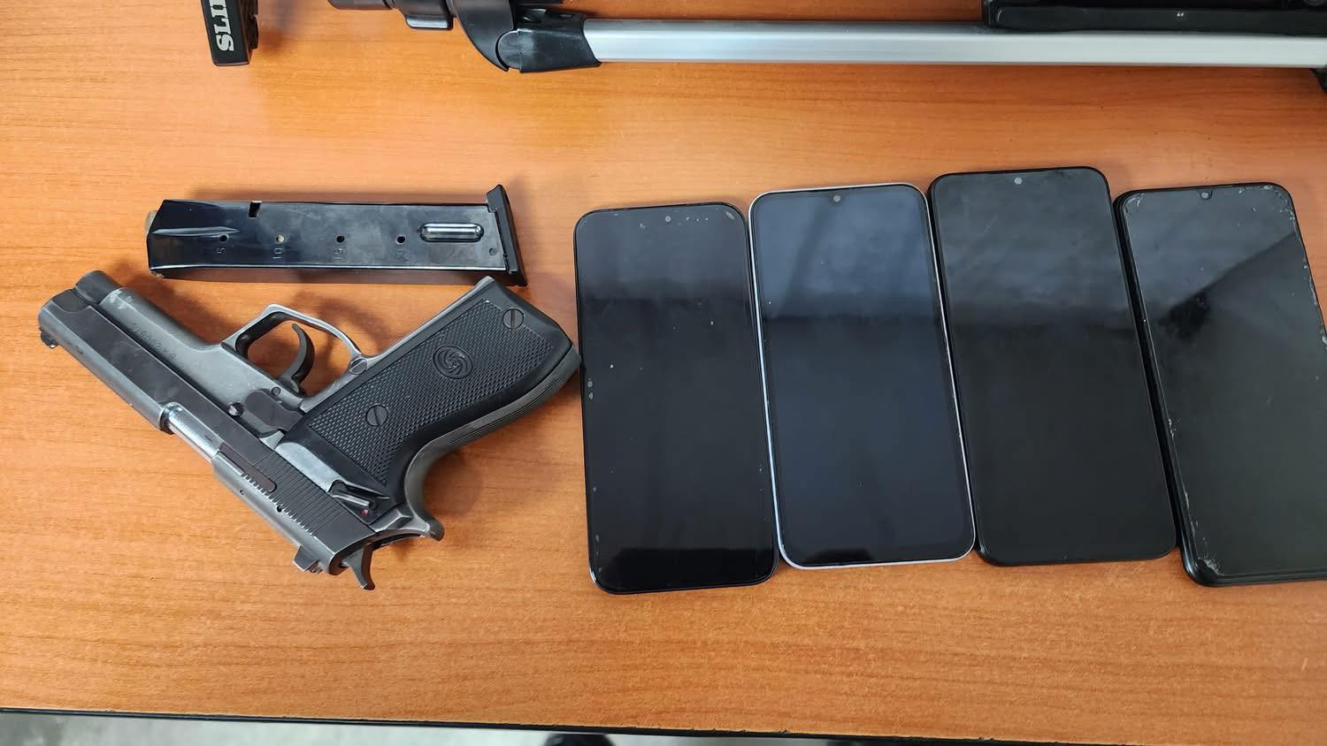 Estos individuos se conducían a bordo de una motocicleta con placa de circulación M-376DTD, además se les incautó una pistola 9mm. marca Daewoo, un cargador con 12 municiones sin la documentación respectiva y cuatro teléfonos celulares, que se presumen que momentos antes habían robado, ya se verifica por medio de los números de teléfono y de IMEI de cada aparato.
