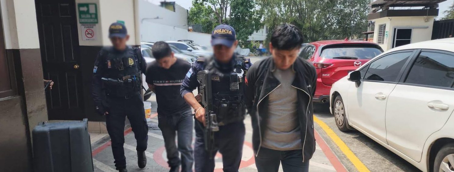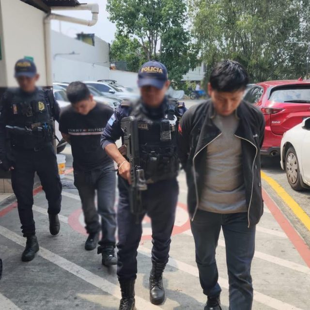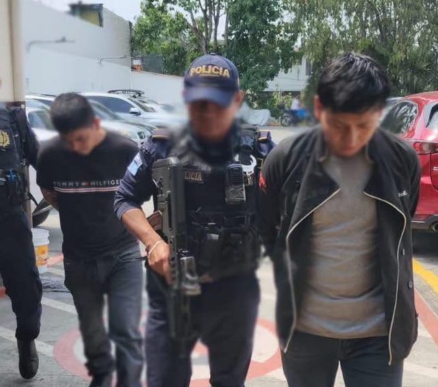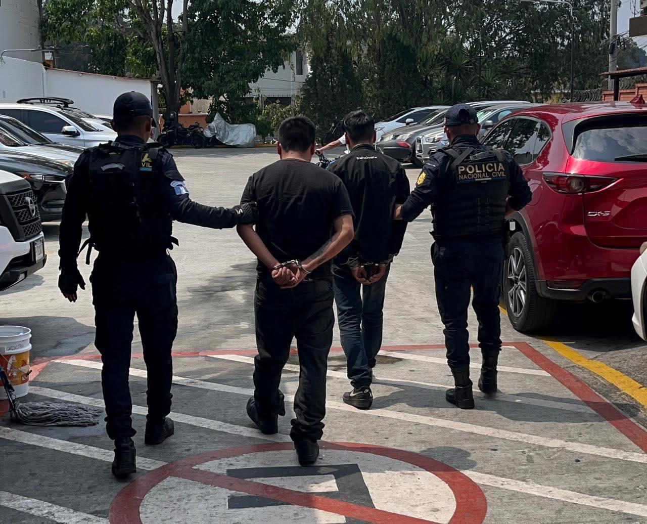 En la 3ª calle y 4ª avenida, Ciudad San Cristóbal, zona 8 de Mixco, agentes de la Policía Nacional Civil PNC de la comisaria 16, reportan la captura de Fabio Modesto Simón Jiménez, de 26 años, y Anthony Josué García Sánchez, de 28 años, quien posee un antecedente por Promoción o estimular a la drogadicción en el año 2021.
