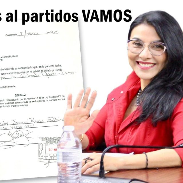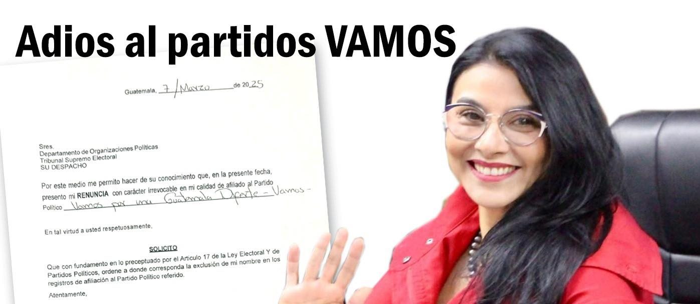 En una carta enviada al Departamento de Organizaciones Políticas del TSE la parlamentaria expresa “Por este medio me permito hacer de su conocimiento que, en la presente fecha presento mi renuncia con carácter Irrevocable en mi calidad de afiliada al Partido Político Vamos por una Guatemala diferente VAMOS”