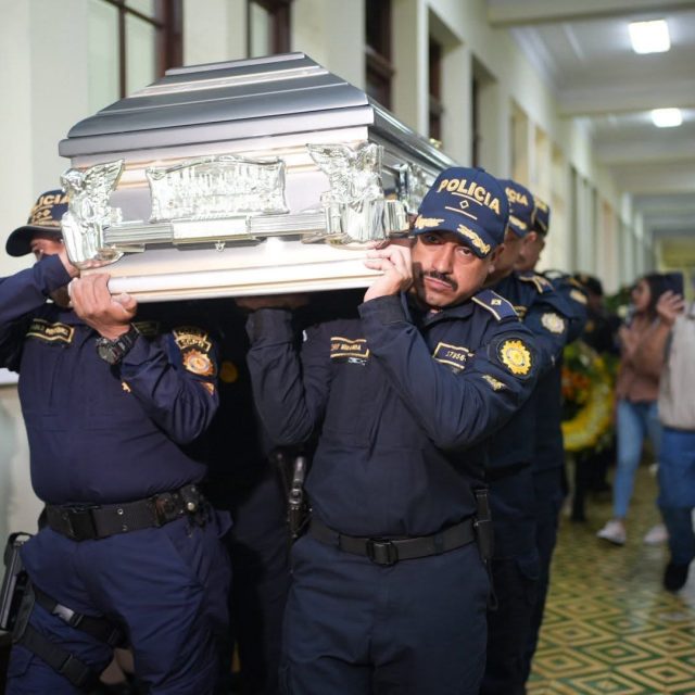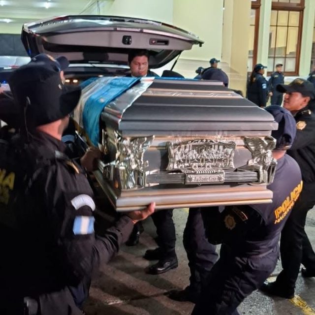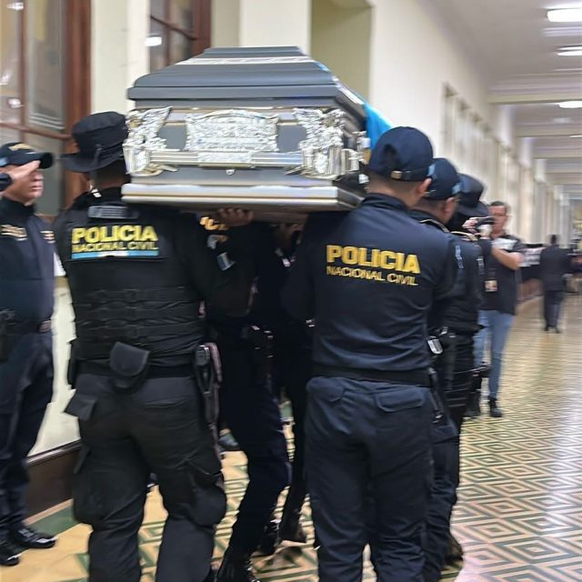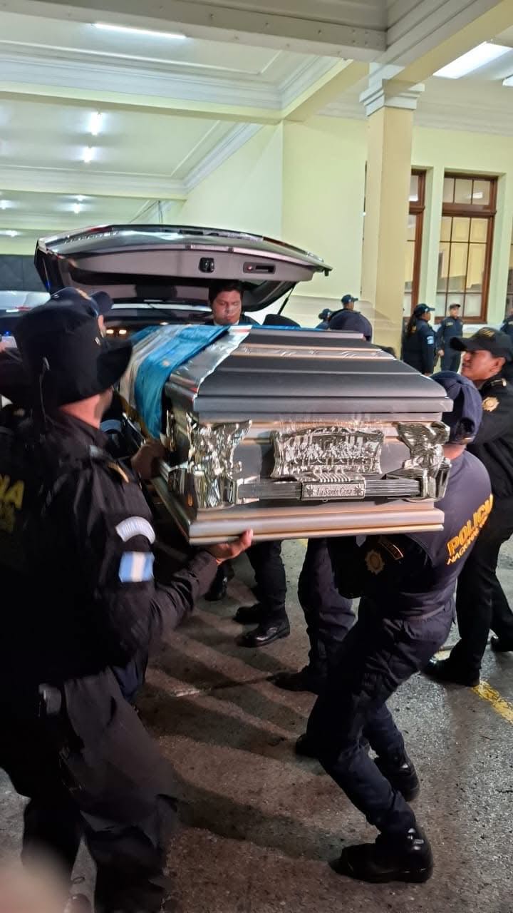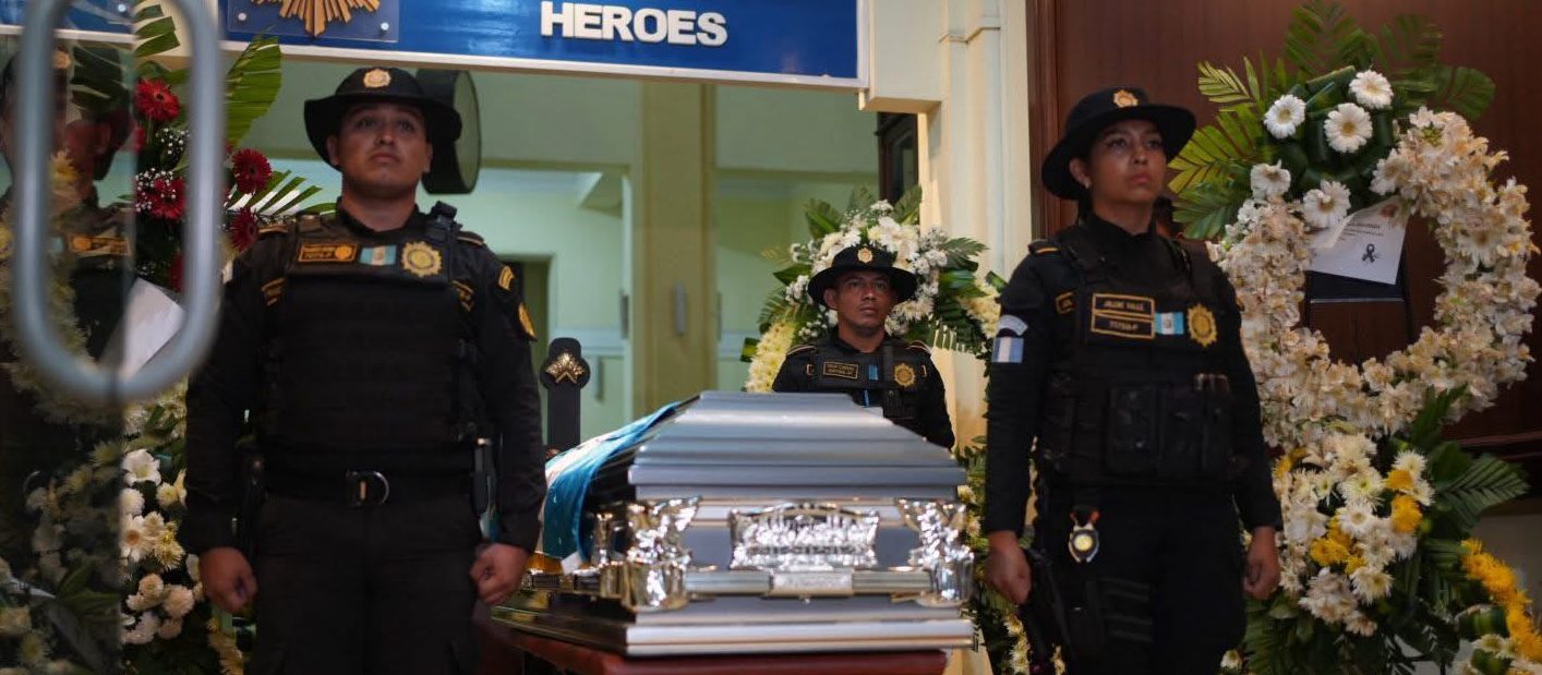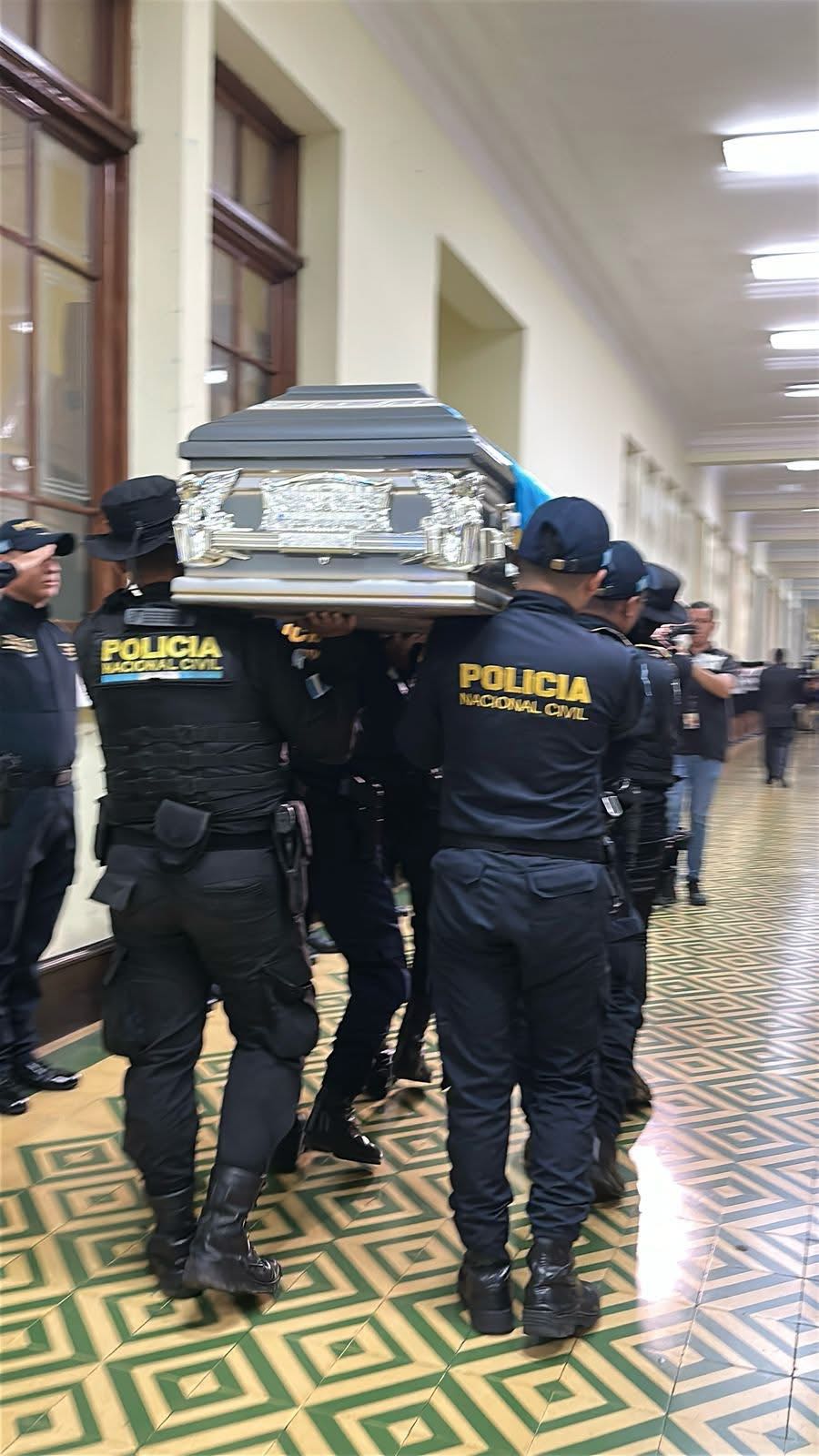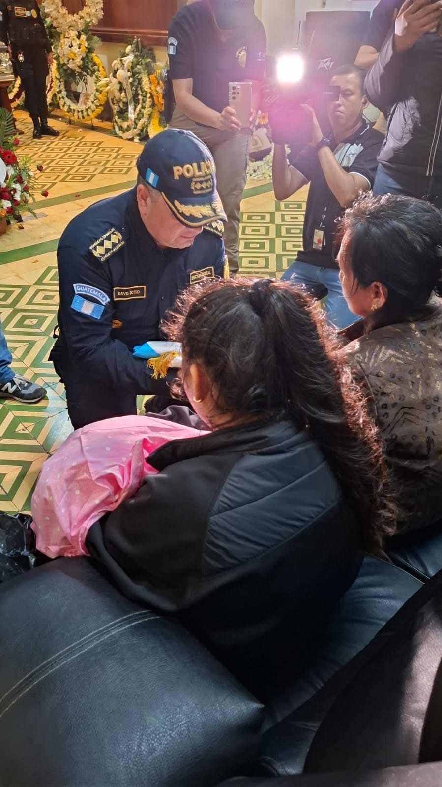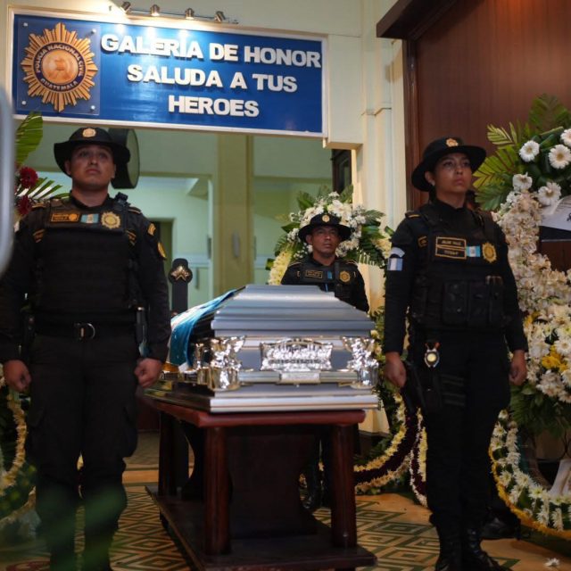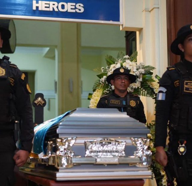 En Dirección General de la Policía Nacional Civil, noche se rindieron honores al agente de PNC Rudy Noél Cardona Siguenza, quien falleció en cumplimiento del deber a causa de los incidentes registrados en San Vicente Pacaya, Escuintla, donde fue rescatada una bebé que había sido secuestrada y fueron capturados dos presuntos secuestradores.