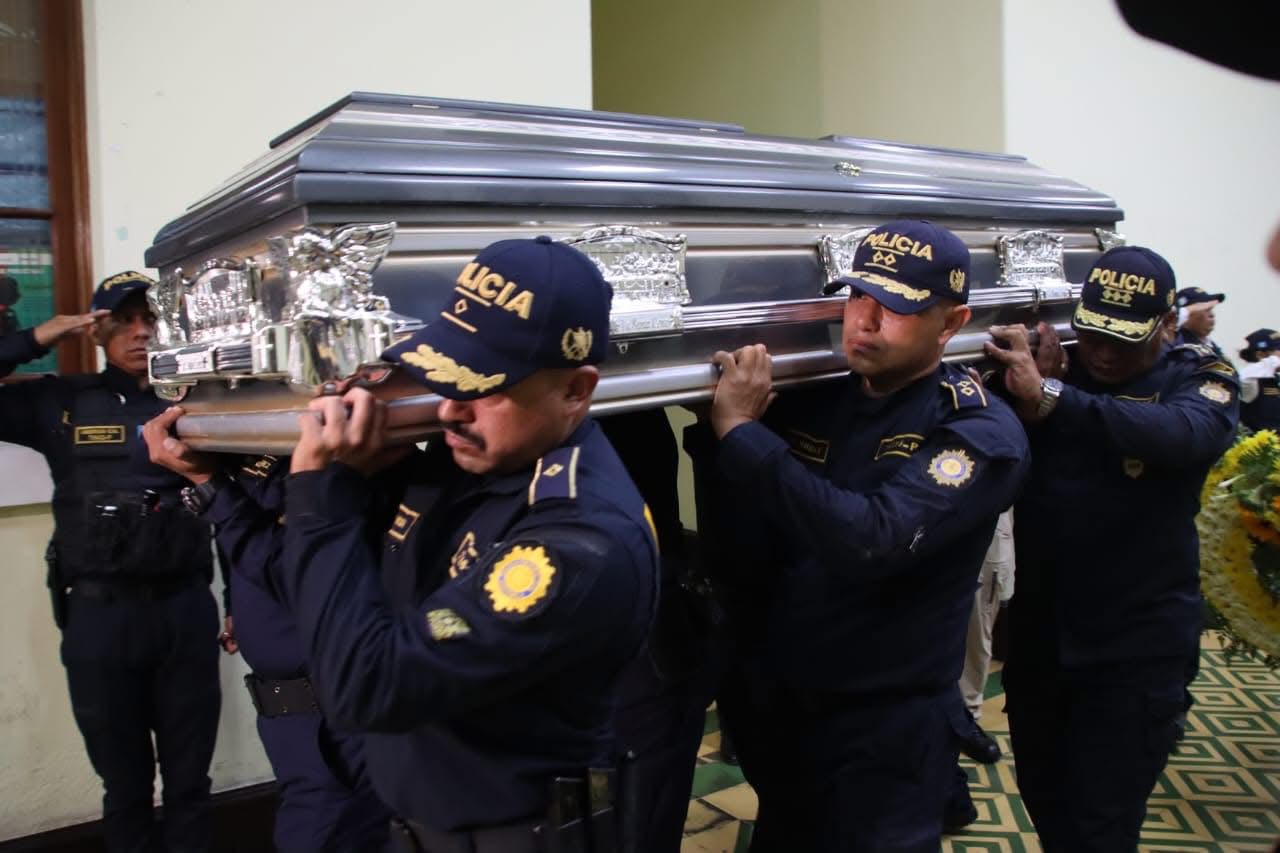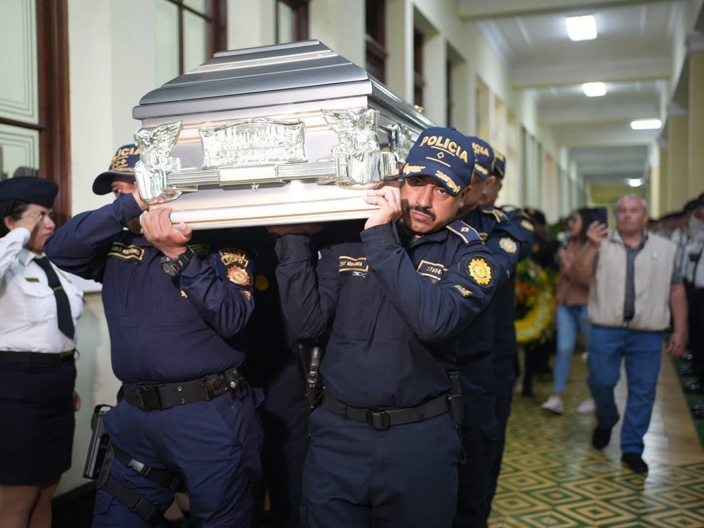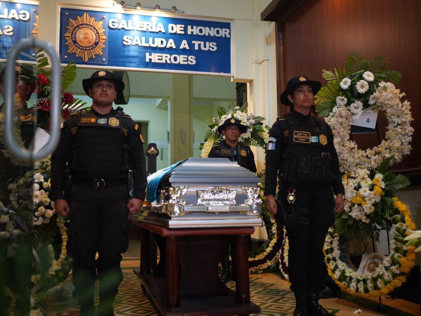 En el acto lo encabezó el Director General de la Policía Nacional Civil David Estuardo Custodio Boteo, cúpula policial, el cuarto Viceministro de Gobernación William Cameros, familiares y compañeros del policía caído en cumplimiento del deber anoche.