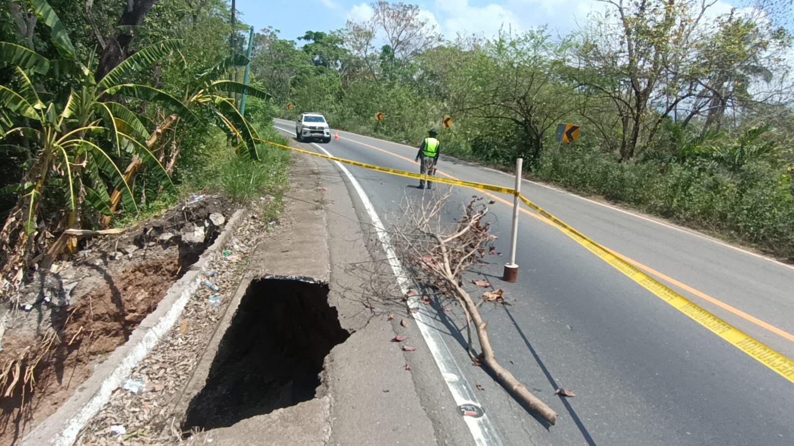 El Ministerio de Comunicaciones, Infraestructura y Vivienda CIV a través de la Dirección de Caminos, lleva a cabo una inspección y limpieza en el agujero que se formó en el km 98 de la ruta de Escuibtla hacia Chiquimulilla.