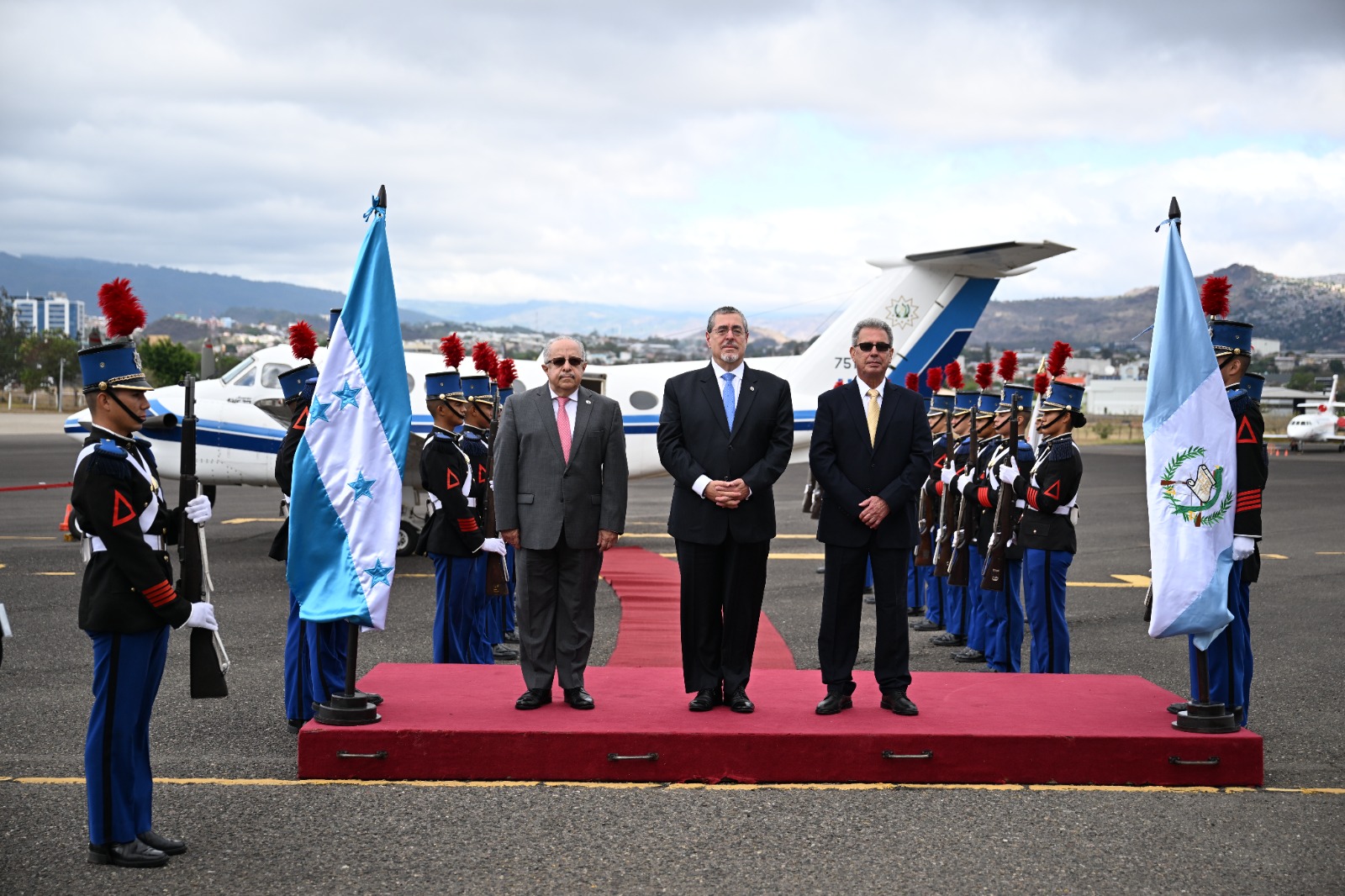 A su llegada el mandatario guatemalteco fue recibido por el designado presidencial, Renato Florentino.