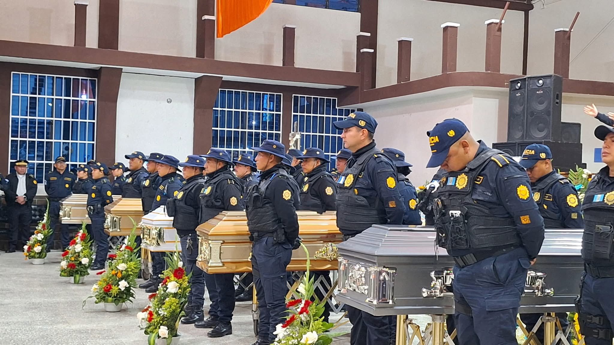En una iglesia en la zona 11 de Huehuetenango, en nombre de la comisaría 43 se llevaron a cabo las honras fúnebres a los agentes Romeo Rodolfo Pérez López, Manuel Abelardo Ruiz Lázaro, Hugo Efraín Palacios Guamuch, Marvin Josué Mauricio Villatoro y Osmar Ezequiel del Valle Argueta, que fallecieron ayer en el hecho de tránsito en San Marcos.