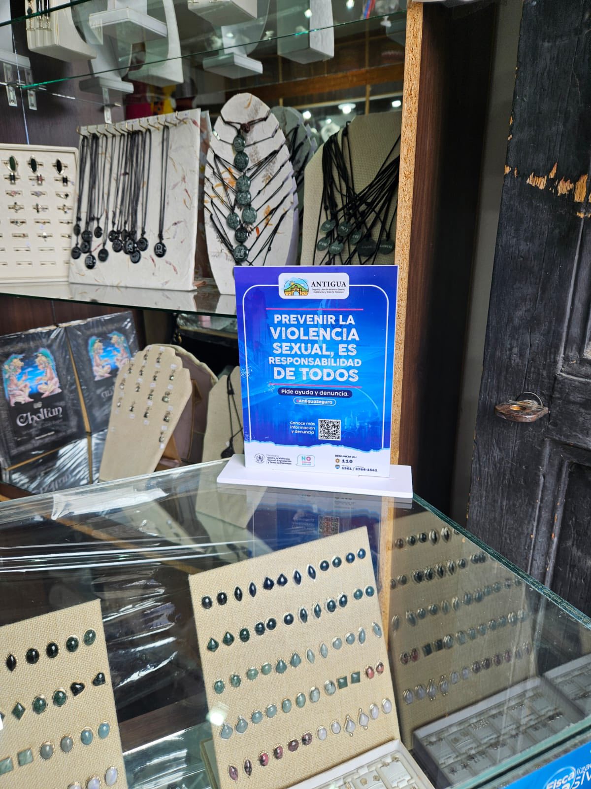 En el marco del proyecto Antigua Segura y Libre de Violencia Sexual, Explotación y Trata de Personas, se logró la adhesión de más de cien comercios de la ciudad colonial de Antigua Guatemala, entre ellos tiendas, restaurantes locales, cadenas internacionales, hoteles y operadores turísticos.