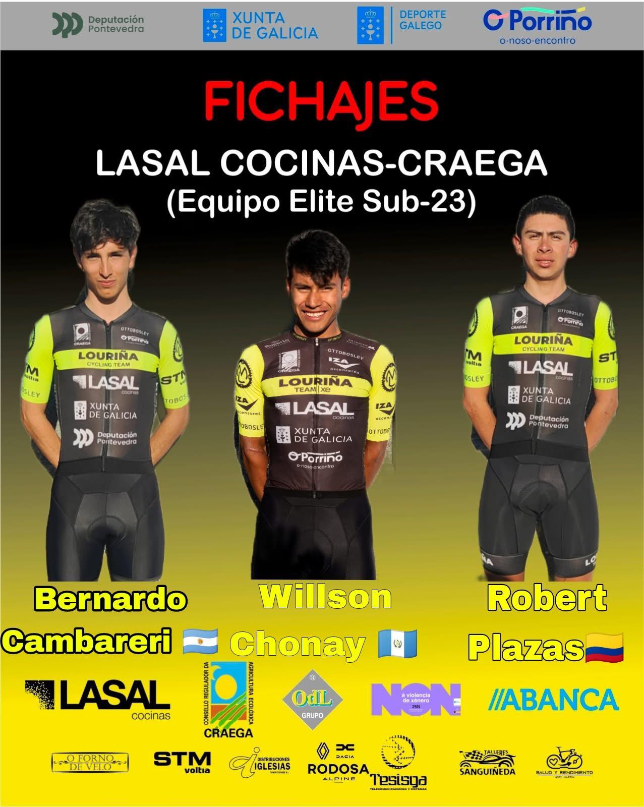 El Team Louriña ha hecho oficial la lista de nuevos fichajes para la temporada 2025 en su página oficial donde se incluye al ciclista guatemalteco Wilson Chonay quien correrá junto con sus compañeros: