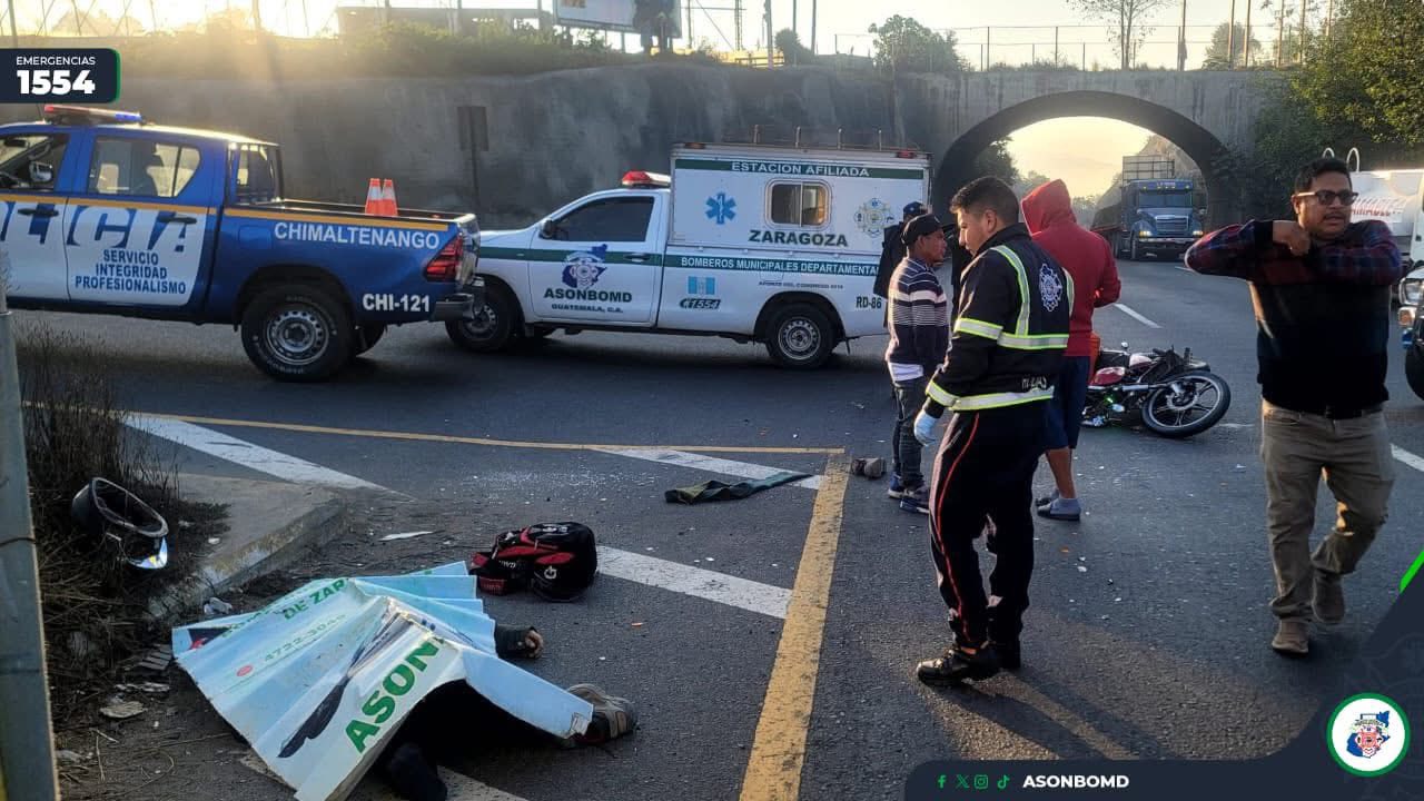 Bomberos Municipales Departamentales de Zaragoza, al evaluar a la víctima, comprobaron que había fallecido debido al fuerte golpe.. #Chimaltenango #percansevial