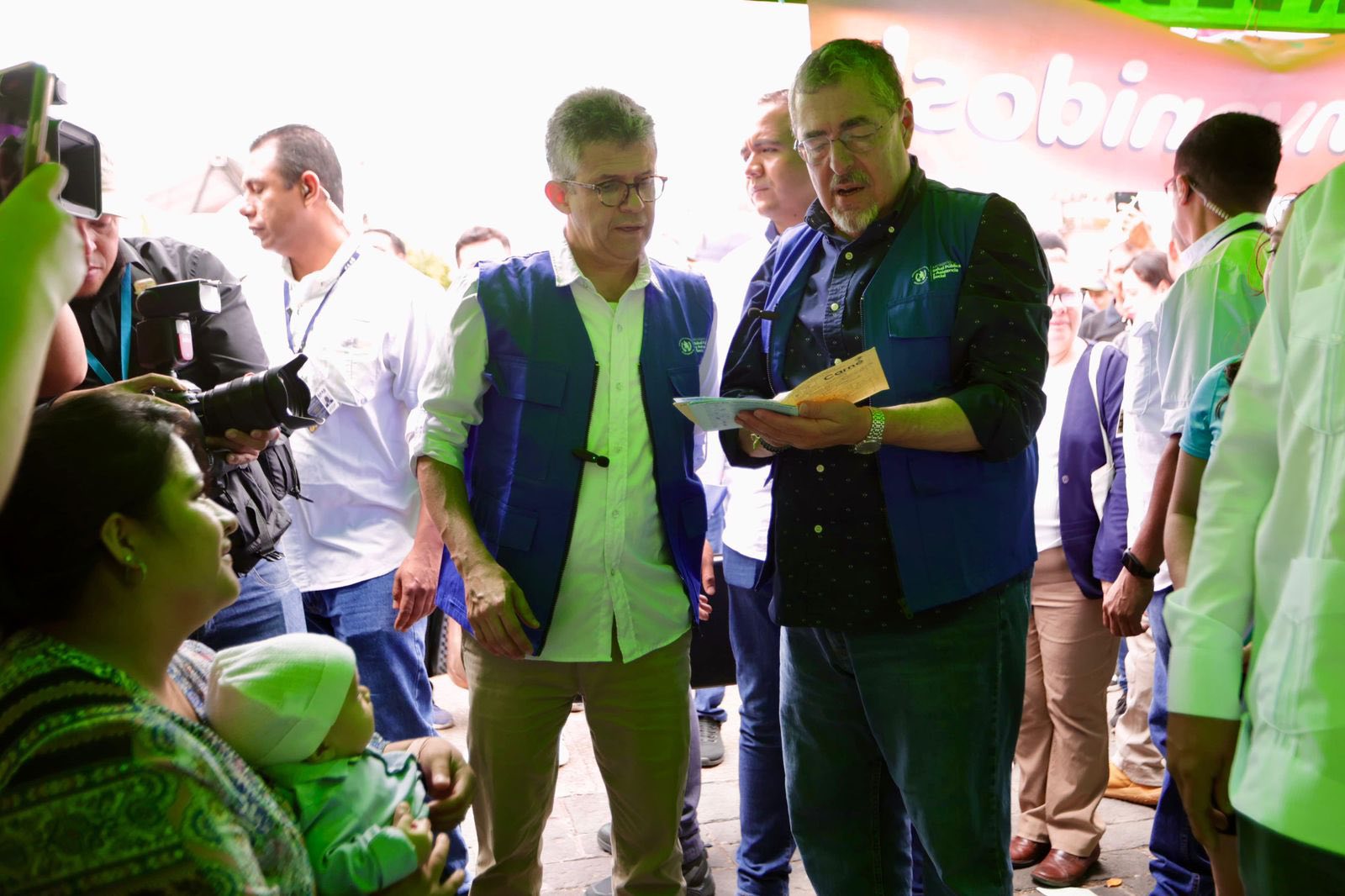 El presidente Bernardo Arévalo junto al ministro de Salud, Joaquín Barnoya, lanzaron este domingo la Semana de la Vacunación de las Américas 2025, en un acto oficial en la Plaza Central.