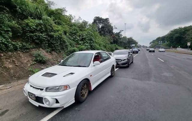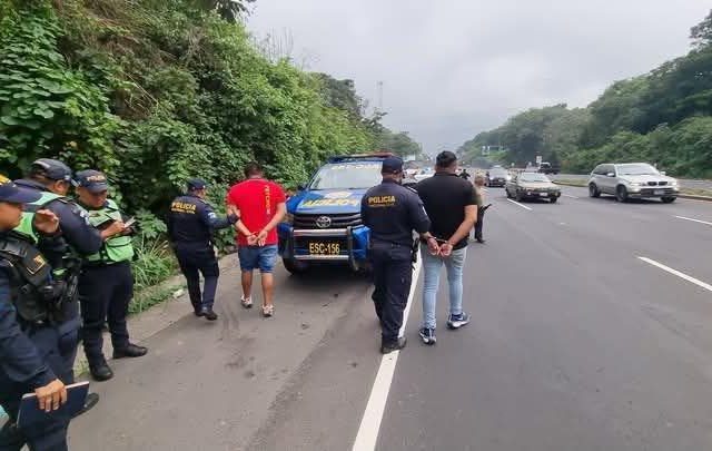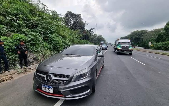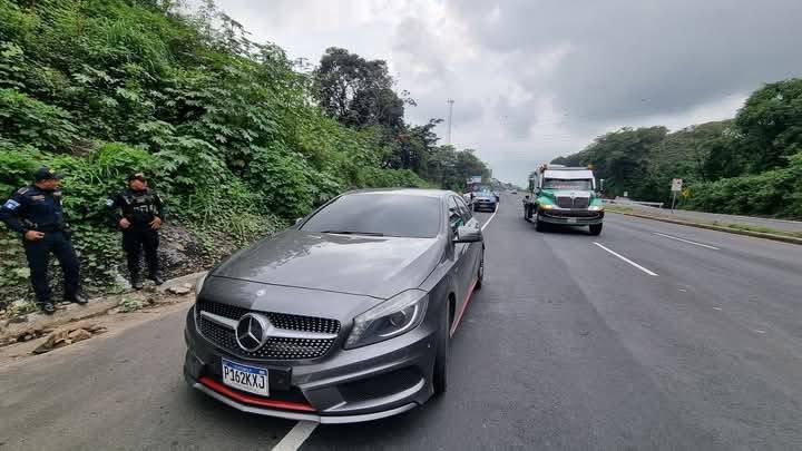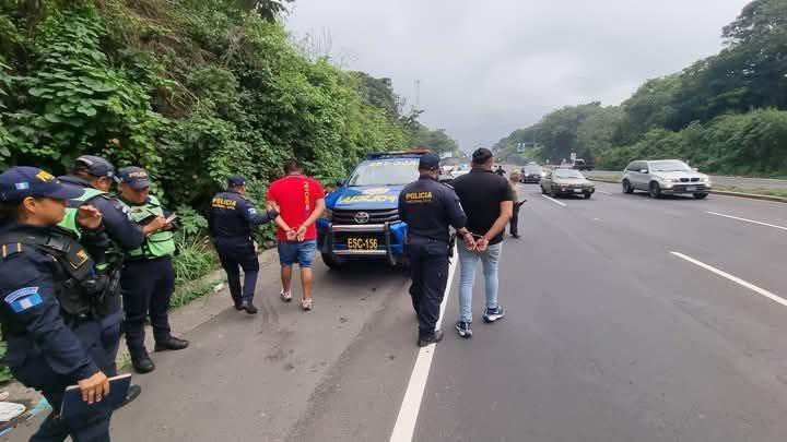 Los policías en el kilómetro 40 neutralizan un automóvil Mitsubishi, línea Lancer Evolution, modelo 1996, con placa de circulación P-991DZM, conducido por Víctor Montufar, de 31 años, y el automóvil, marca Mercedes-Benz, modelo 2014, con placa de circulación P-162KXJ, conducido por Luis Corado, de 31 años.