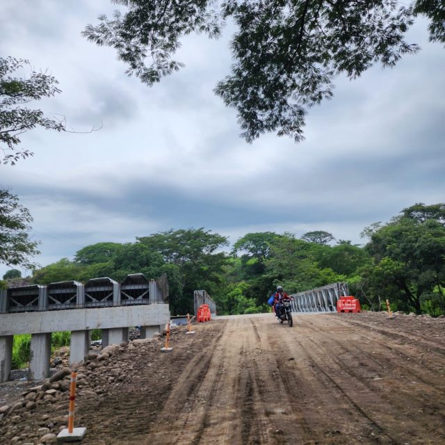 La obra, ejecutada por la División de Mantenimiento de Caminos, consiste en un puente metálico modular, portátil y prefabricado, diseñado especialmente para garantizar el tránsito vehicular en zonas de riesgo. Esta estructura temporal será clave para mantener el paso fluido mientras avanza la construcción del puente Platanares de concreto, parte del proyecto estratégico del Anillo Regional C-50.