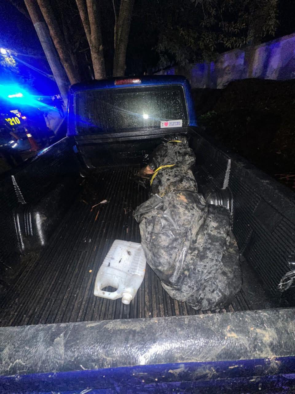Las autoridades comentaron que los responsables probablemente luego del percance abandonaron el automóvil y el cadáver Al momento se desconoce la identidad y género #Violencia #PNCdeGuatemala