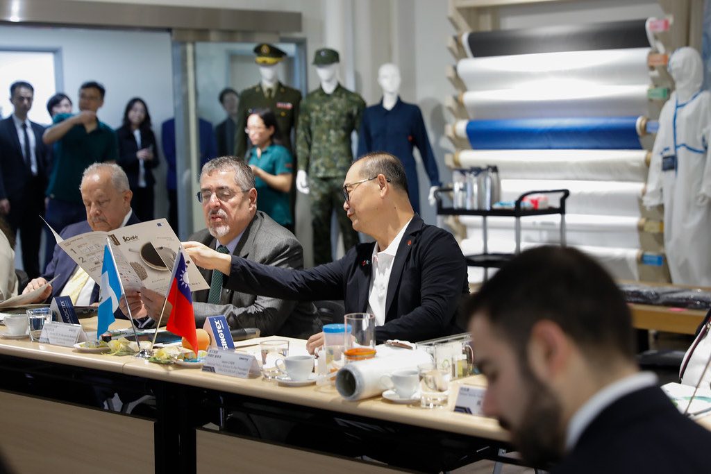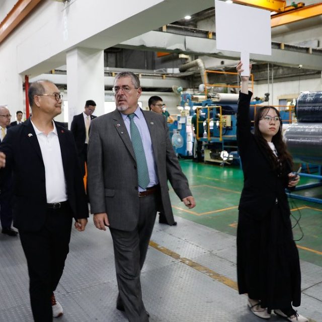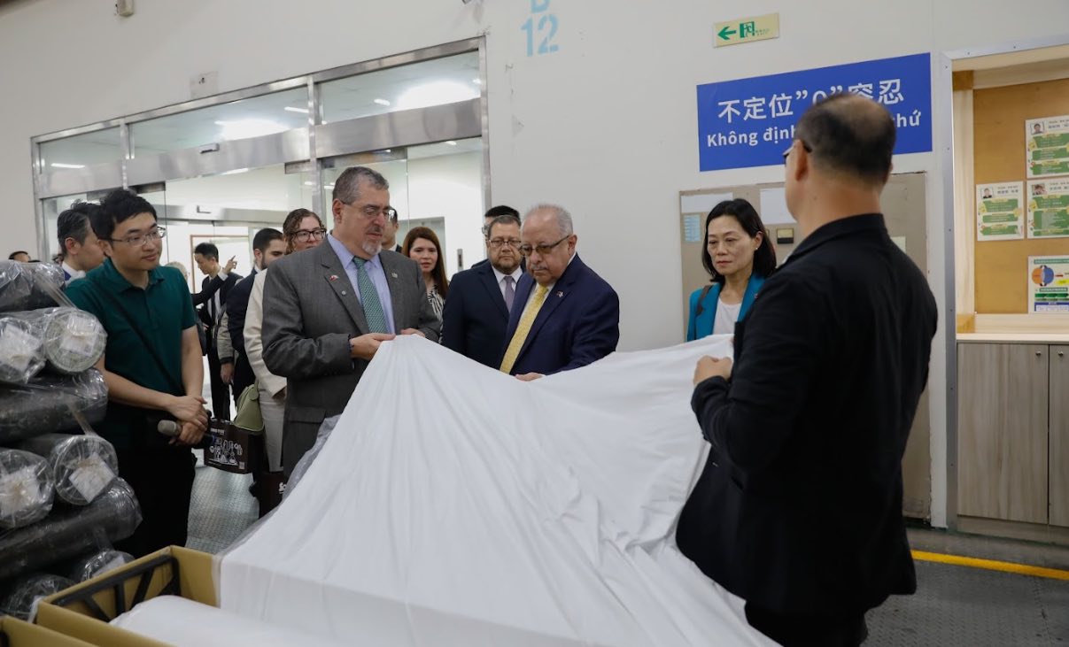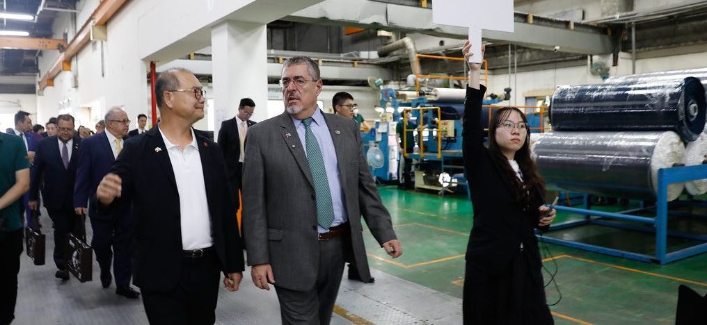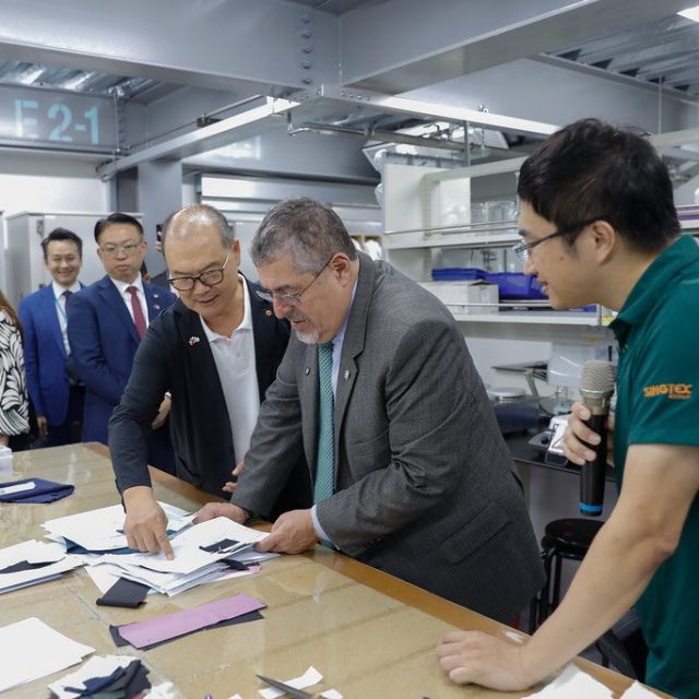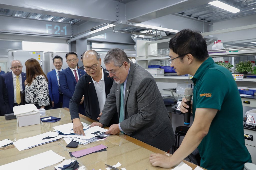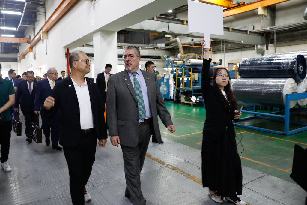 El presidente Bernardo Arévalo, en su gira oficial por la República de China (Taiwán), hizo una visita a la empresa Textil G-Fun, dedicada a la producción de impermeables.