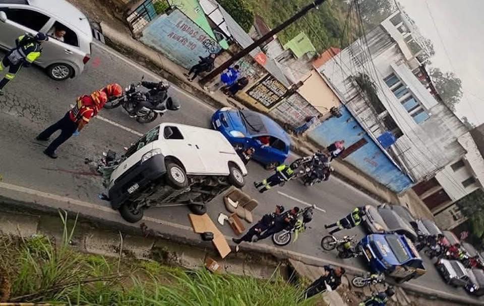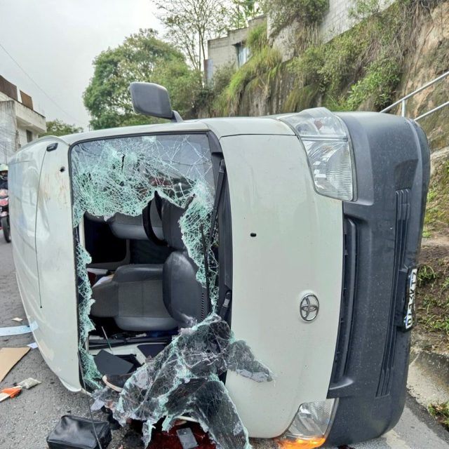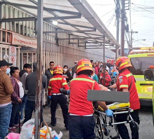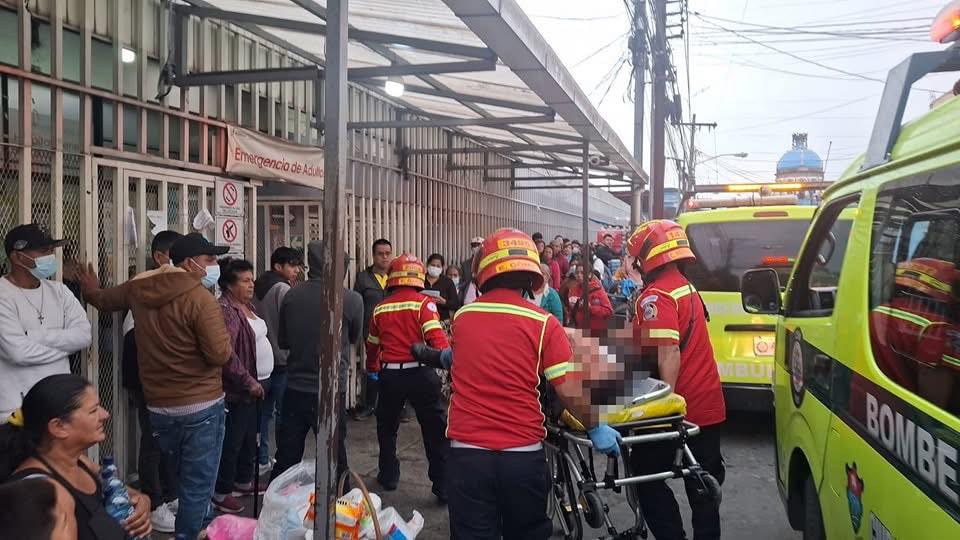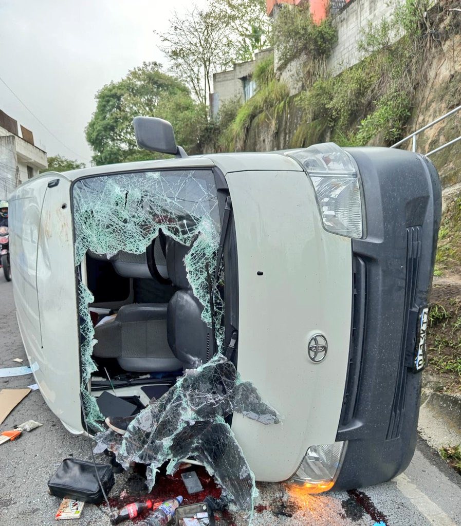 Los Bomberos Municipales trasladan a 2 pasajeros heridos y el vehículo queda volcado en el lugar del ataque. #Violencia #zona18