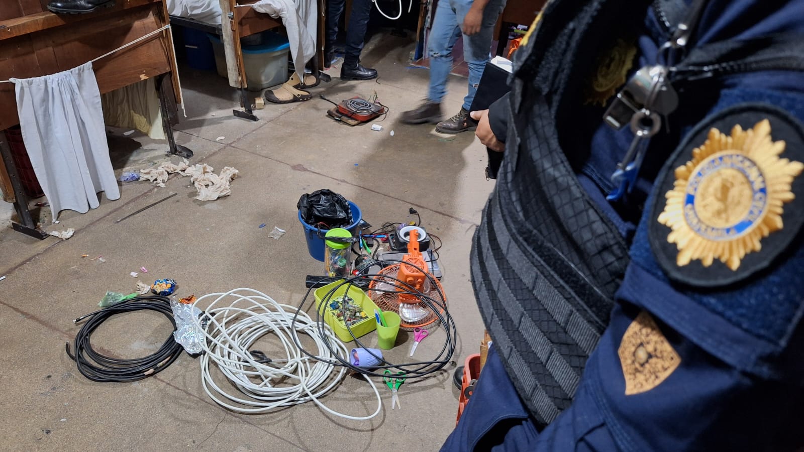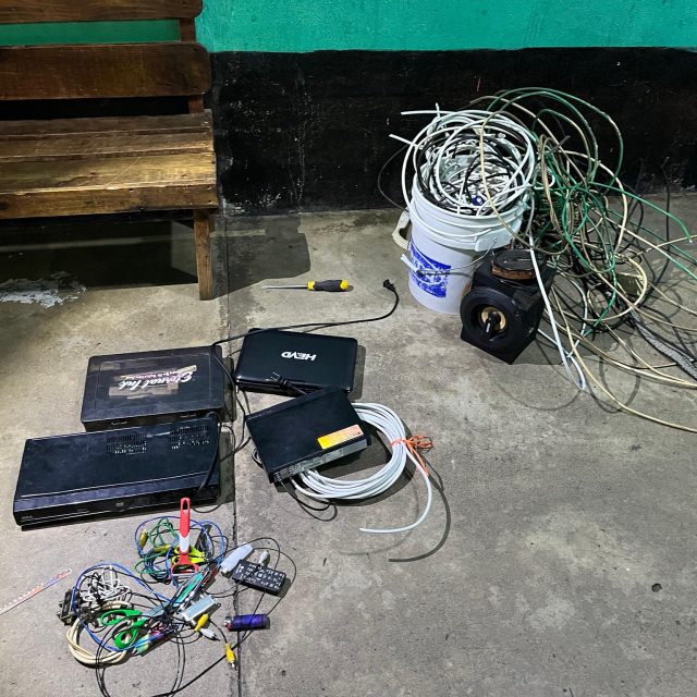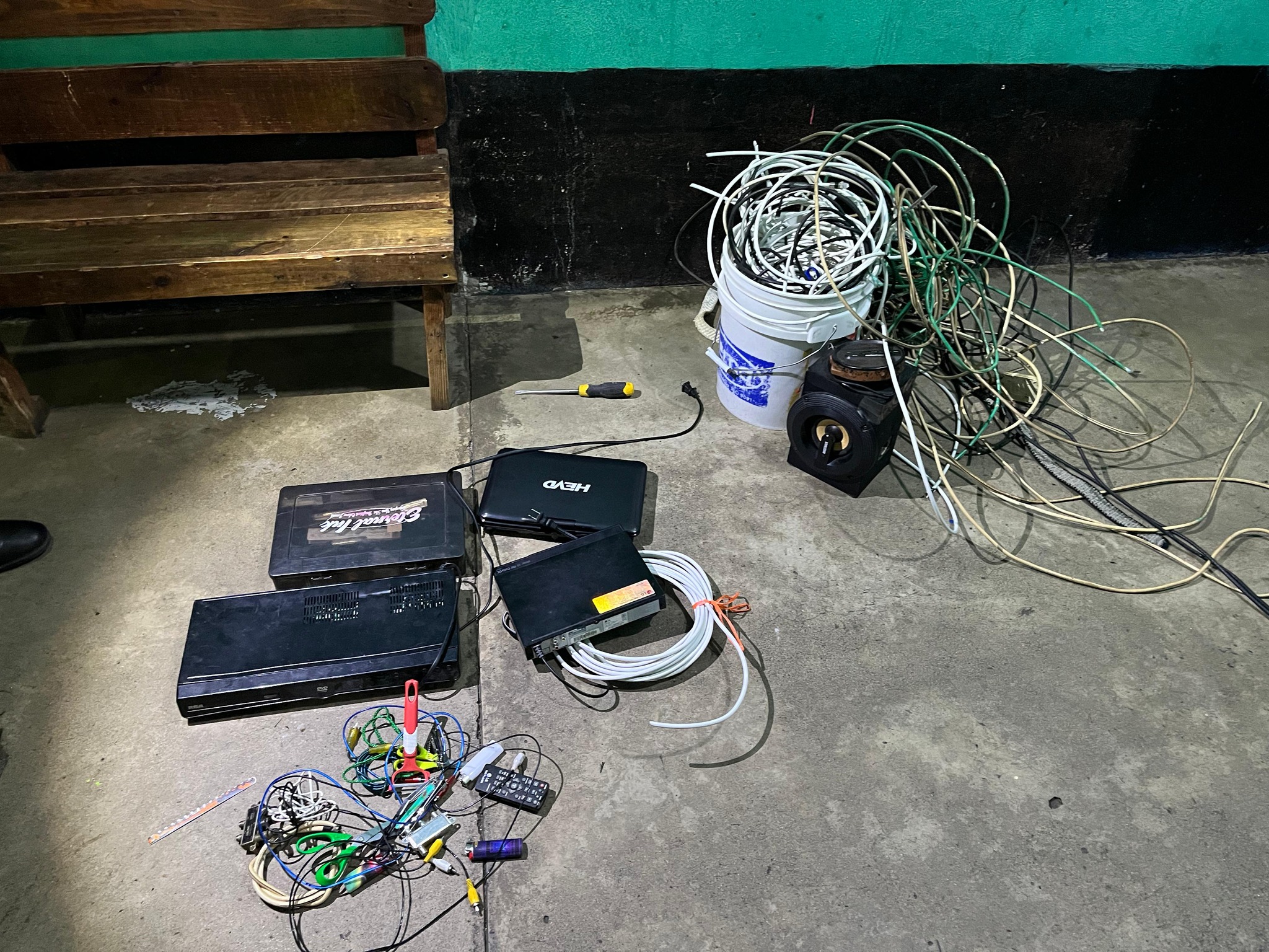 Lo localizado fue un router, objetos corto punzantes, aproximadamente 10 metros de cable de fibra óptica para internet, aproximadamente 650 metros de cable eléctrico, 3 chips y una memoria USB.
