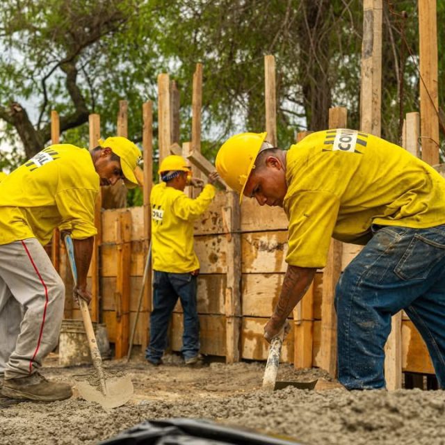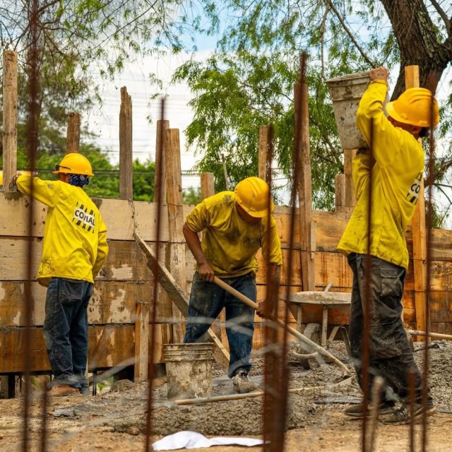 Preparación para edificar una caja de recolección pluvial.