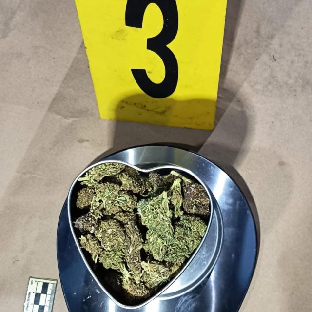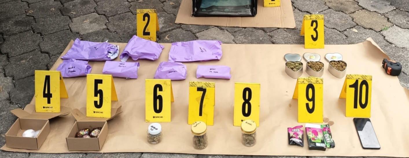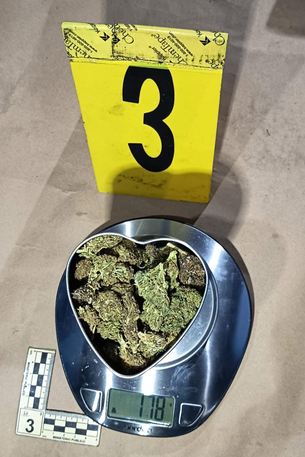 Al detenido se le incautó un recipiente con metanfetamina, 6 recipientes con marihuana, 3 recipientes con gomitas de marihuana, 3 brownies con marihuana, un vaporizador con aceite de marihuana, además de un celular que servirá para continuar con la investigación y la motocicleta que utilizaba para realizar la distribución de la droga.