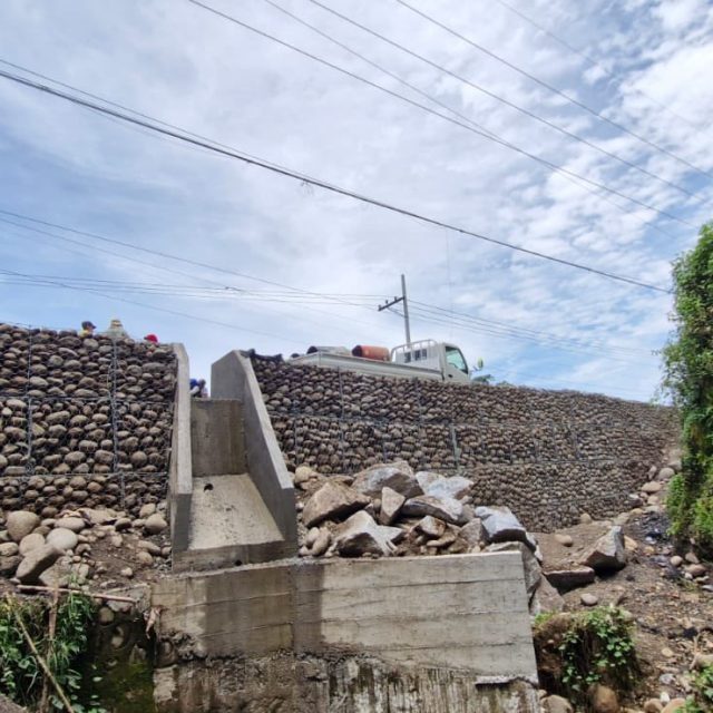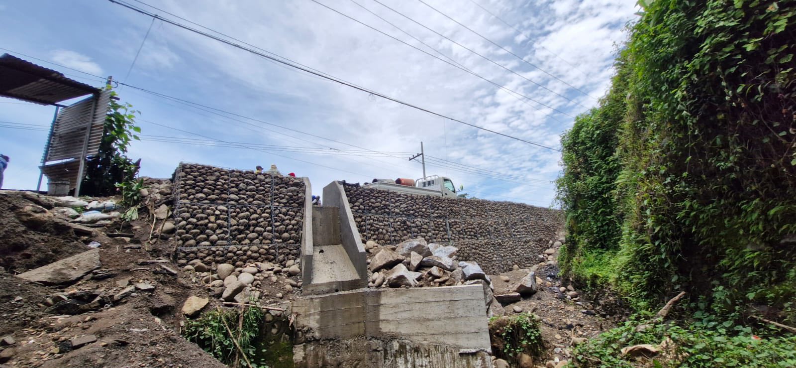 -Levantamiento de un muro de gaviones para estabilización del terreno.