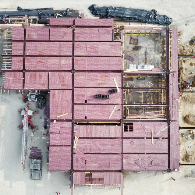 Actualmente se trabaja en la cimentación del edificio, con labores como la perforación y colocación de pilotes, instalación de vigas de amarre y levantamiento de columnas del primer nivel. Esta etapa es clave para asegurar una estructura sólida y segura a largo plazo.