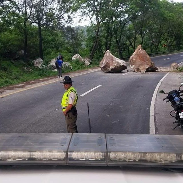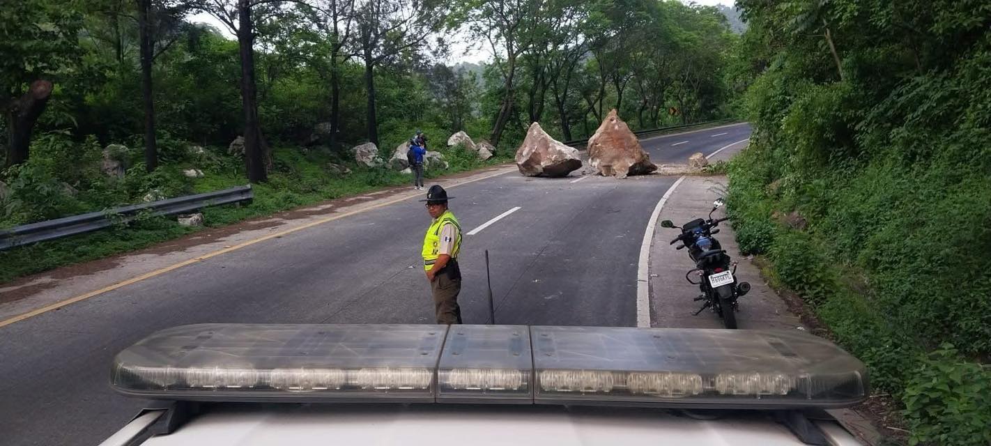 – RN-10, Antigua Guatemala: bloqueo total por derrumbe de rocas de gran magnitud (Zona Vial 12)