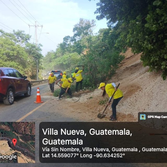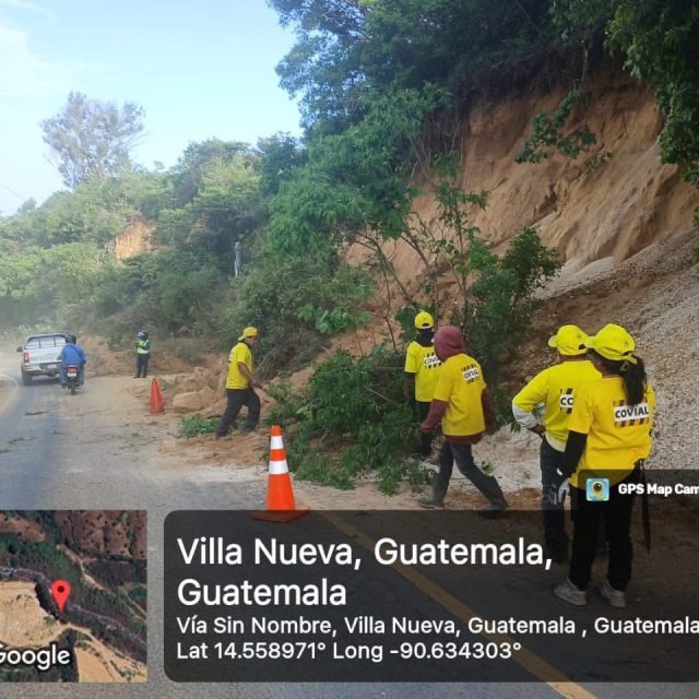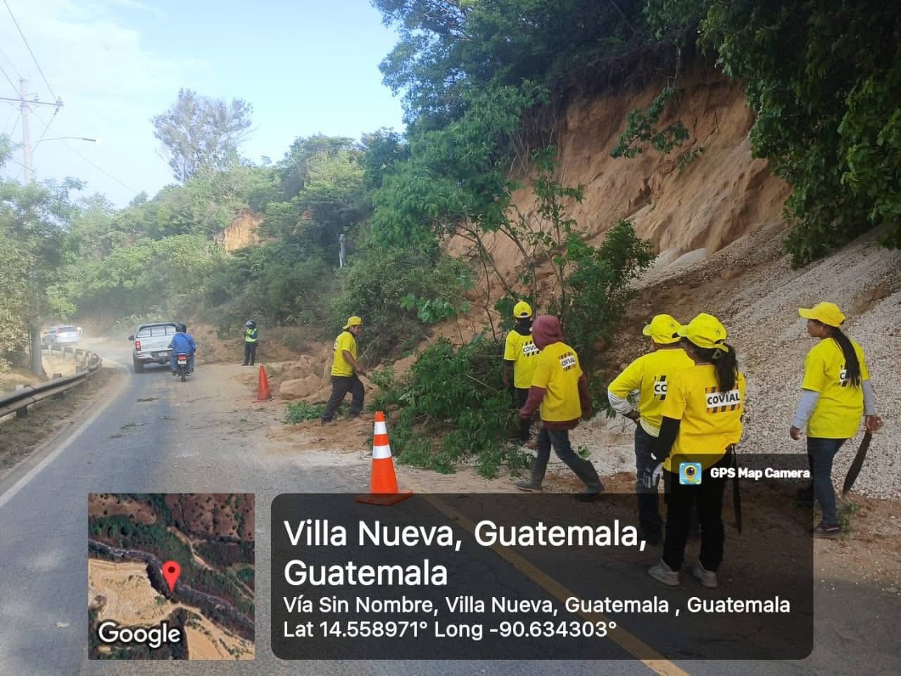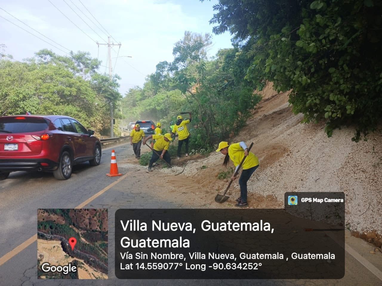 Mientras tanto, brigadas de Provial regulan el tránsito y colaboran en la limpieza de vías afectadas. En el km 25 de la CA-9 Sur, en Amatitlán, un derrumbe bloquea el carril derecho en dirección sur, y el personal trabaja sin descanso para liberar la vía cuanto antes.