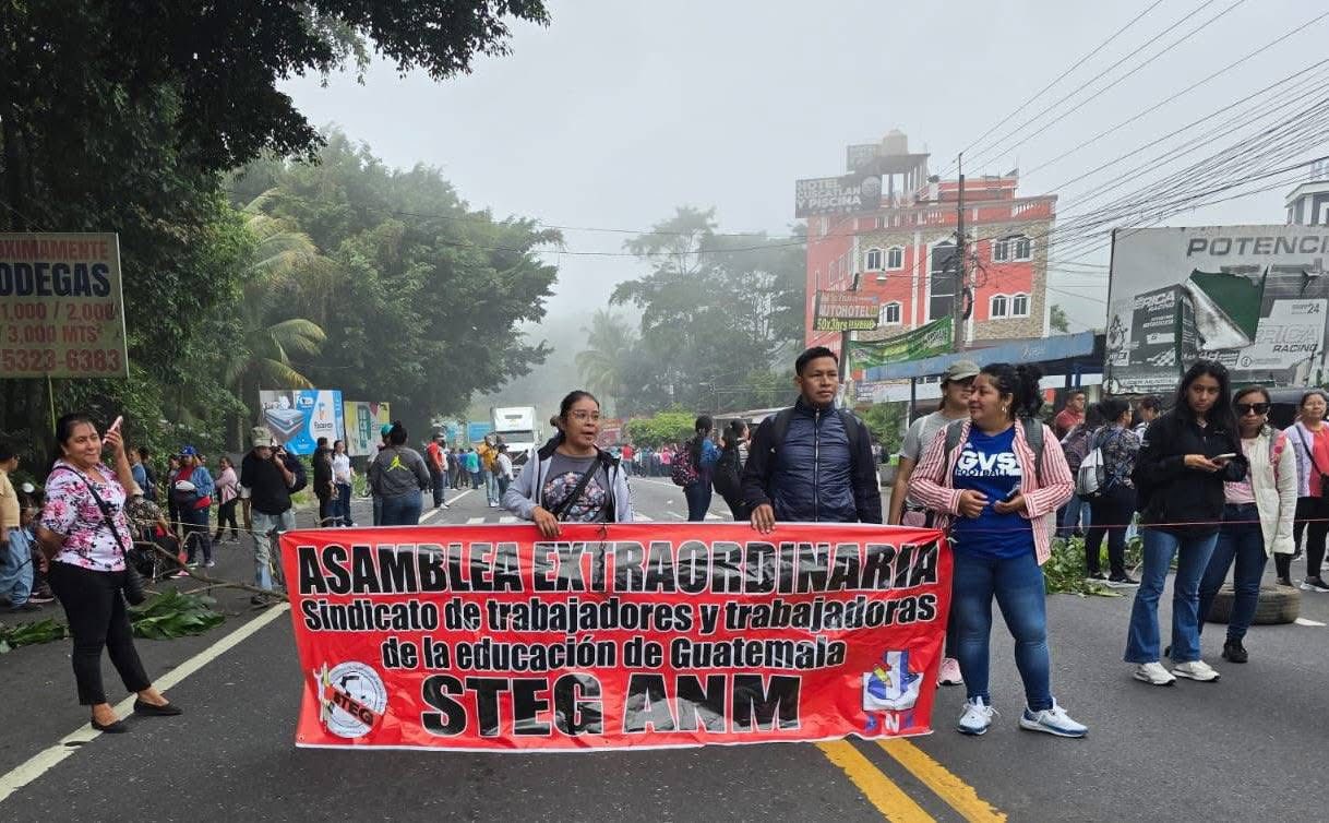 Este viernes en el kilómetro 154, en el cruce hacia el municipio de Samayac, Suchitepéquez un grupo de maestros afines a Joviel Acevedo del STEG inician bloqueos.