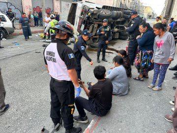 Un fuerte accidente de tránsitos entre un camión y una camionetilla se registró esta mañana en la 10 calle y 9 avenida de la zona 1 capitalina, frente al Congreso de la República.