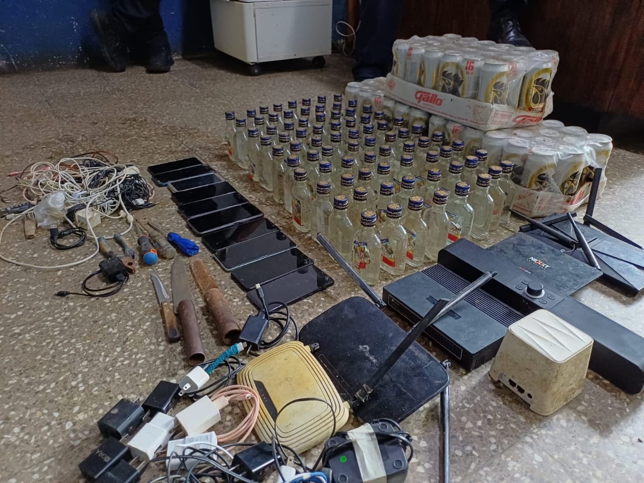 El viernes 1 de agosto, la Granja de Rehabilitación Penal Pavón, en Fraijanes, fue el lugar del operativo. En el sector Módulo, los agentes localizaron dos routers, cables para generar señal de internet, objetos punzocortantes, una botella de licor, dos celulares y un chip.