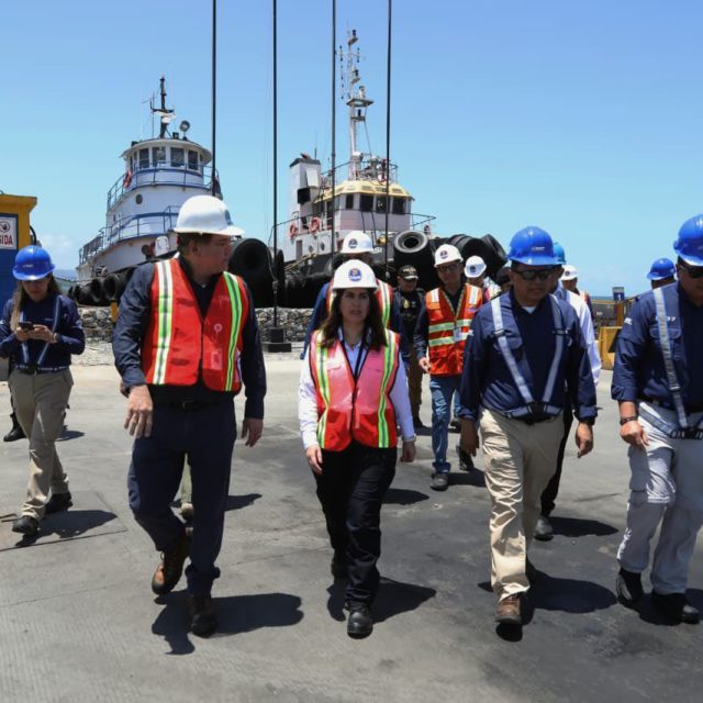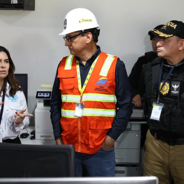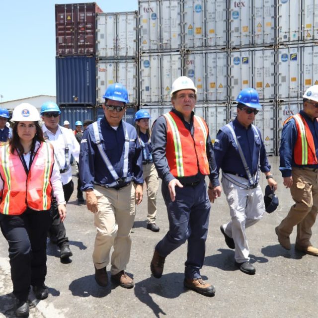 Como parte de su agenda, también se trasladó a los patios de maniobra donde se movilizan los contenedores, verificando de primera mano el despliegue de la Policía Nacional Civil (PNC).