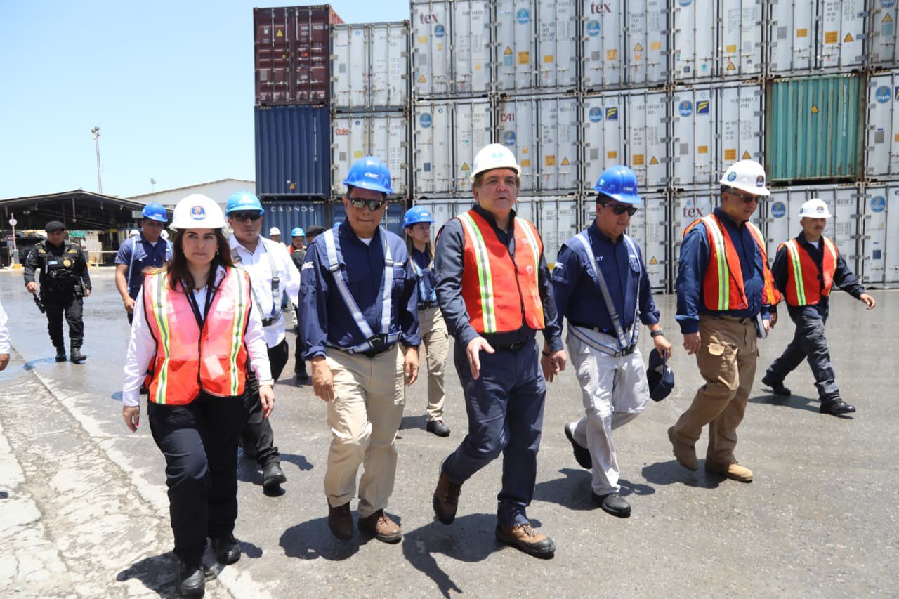 Durante su visita a Puerto Barrios, Palencia recorrió áreas estratégicas como las zonas de aduanas, bodegas y centros de mando, además de los espacios destinados a la inspección de embarcaciones.