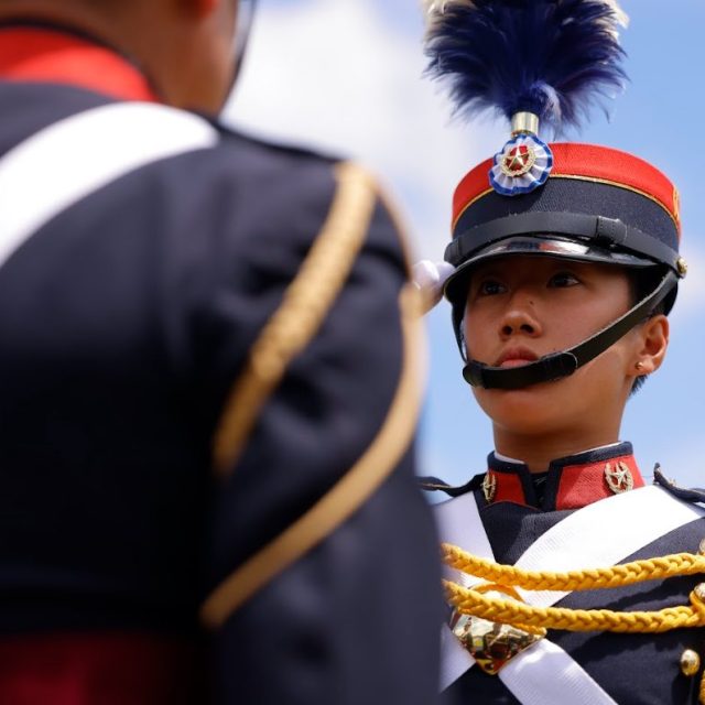 Una mujer y un hombre provenientes de la República de China (Taiwán), junto a un estudiante dominicano, que por medio de la Conferencia de las Fuerzas Armadas Centroamericanas (CFAC) integran las filas de esta casa de estudios, fortaleciendo la cooperación académica y militar con países amigos.