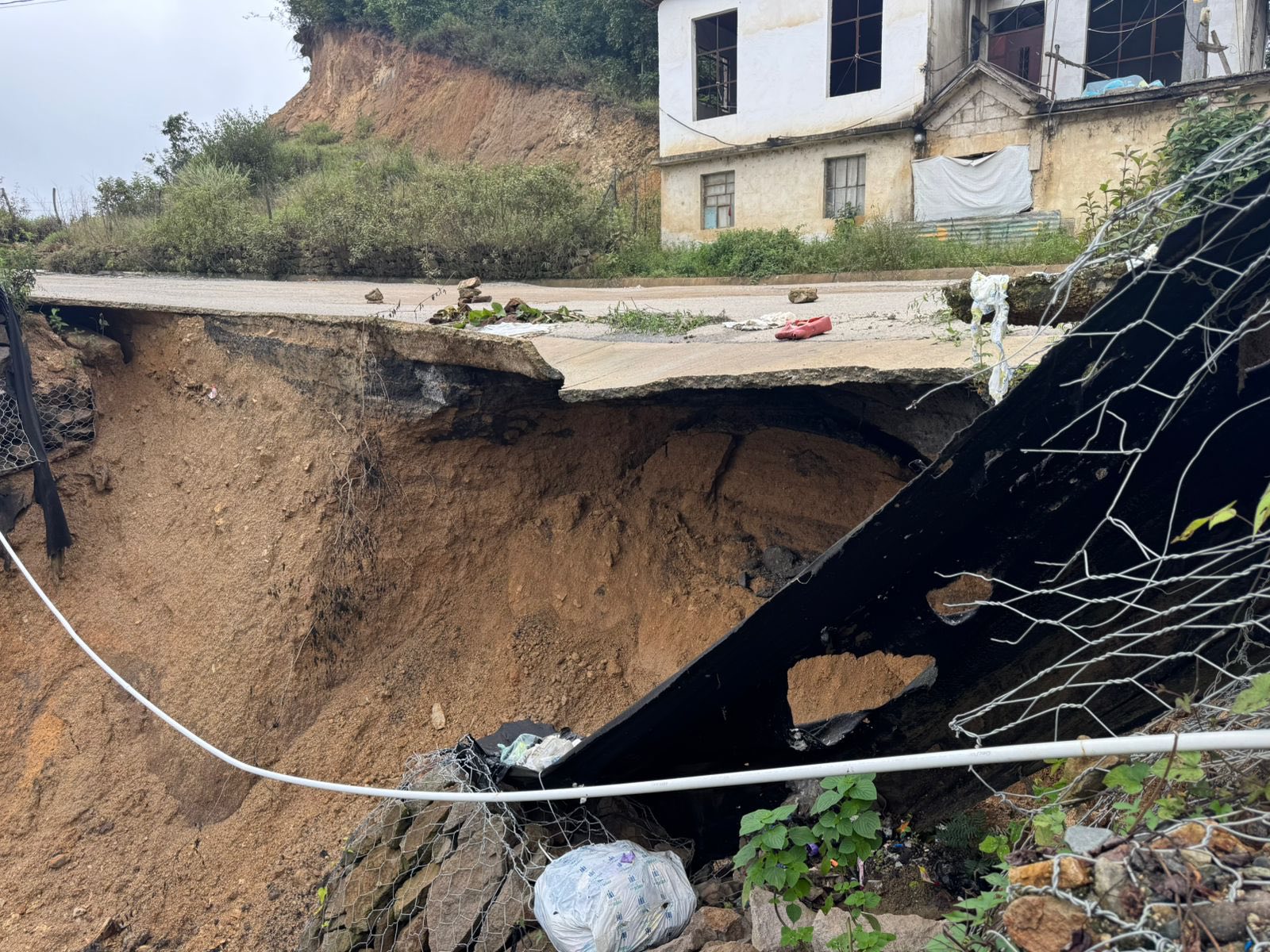El tramo presenta un colapso en el talud, con la carpeta asfáltica suspendida y riesgo inminente de desplome. Esta situación amenaza directamente la seguridad de los vecinos y de quienes transitan por la vía.