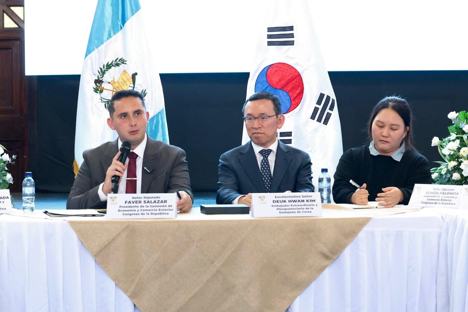 A la actividad asistió el Presidente Nery Ramos; Deuk Hwan Kim, embajador extraordinario y plenipotenciario de Corea del Sur en Guatemala; y la ministra de Economía.