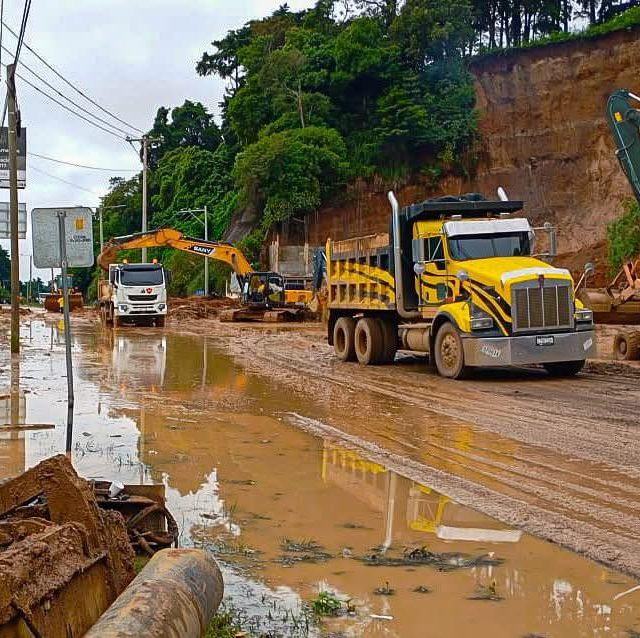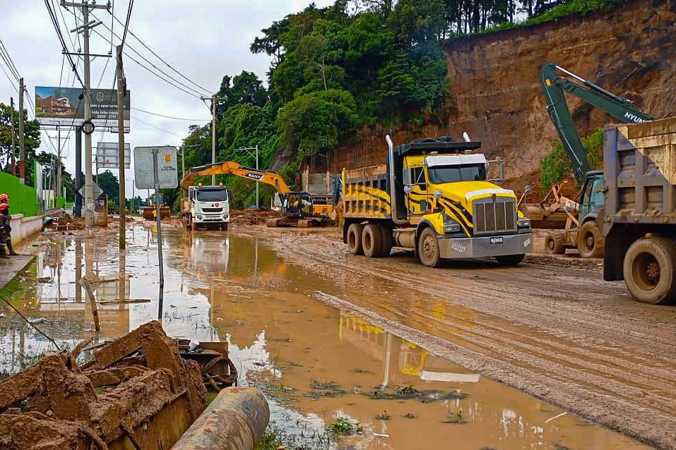 Gracias a la mejora en las condiciones del clima, las cuadrillas —integradas por entre 45 y 50 trabajadores— han intensificado las labores de remoción y despeje. Hasta el momento, se han retirado 2,016 metros cúbicos de material, volumen equivalente a unos 200 camiones de volteo cargados de tierra y lodo.