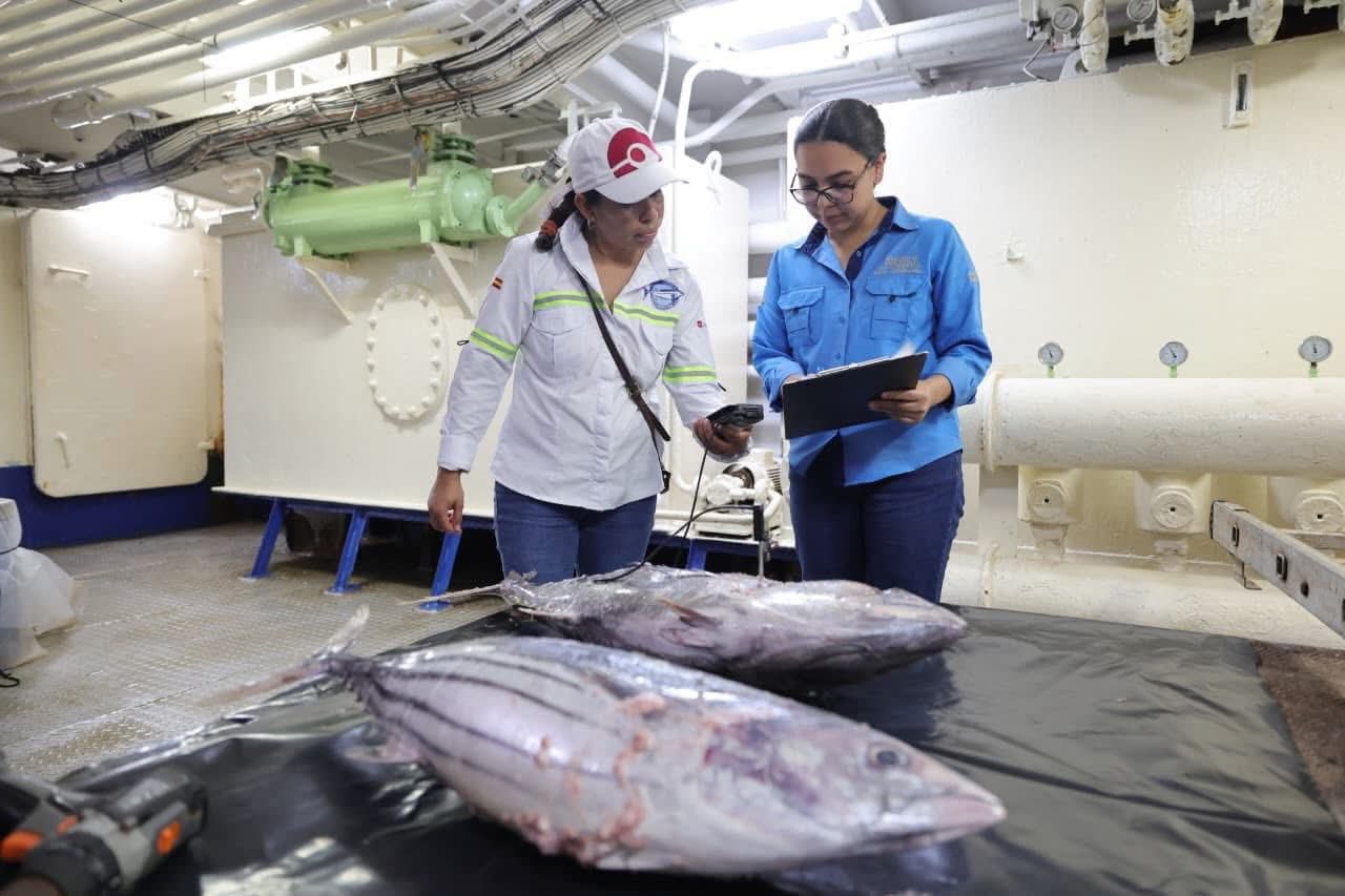 Personal del Ministerion de Agricultura Ganadería y Alimentación MAGA realizó una verificación sanitaria en alta mar, en Puerto Quetzal, a un barco atunero para garantizar que el atún capturado sea seguro y apto para el consumo humano.