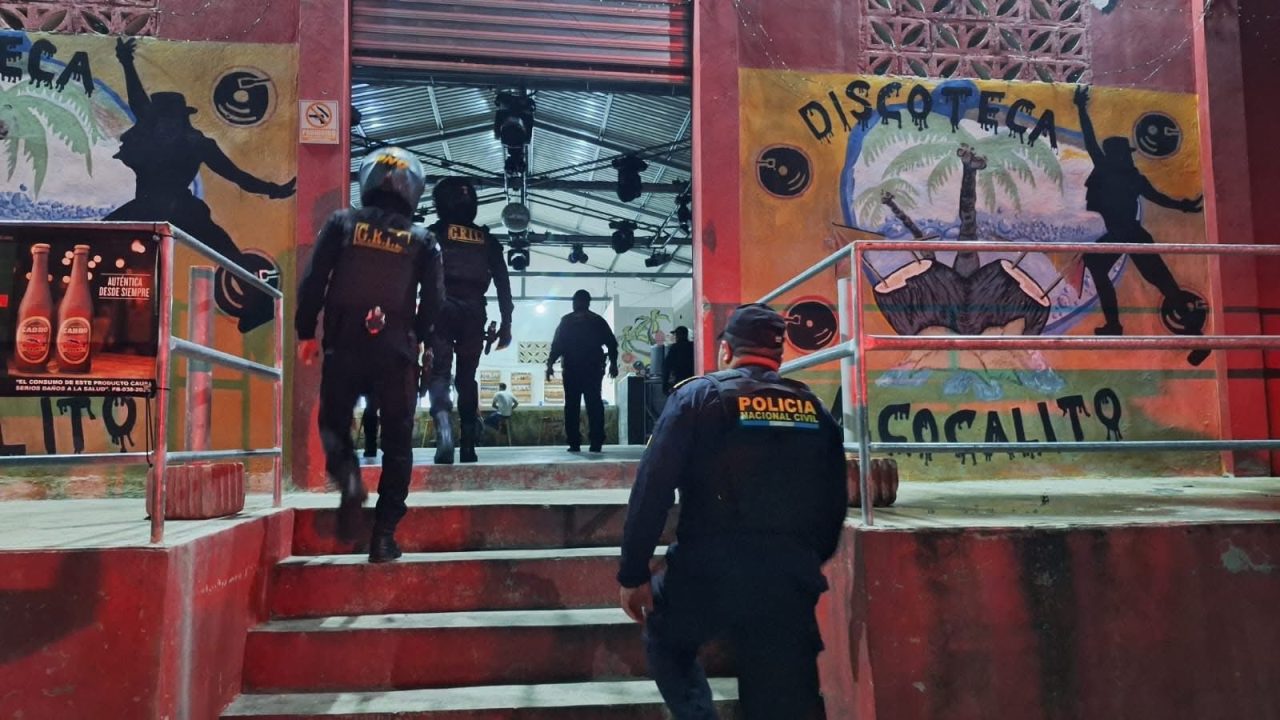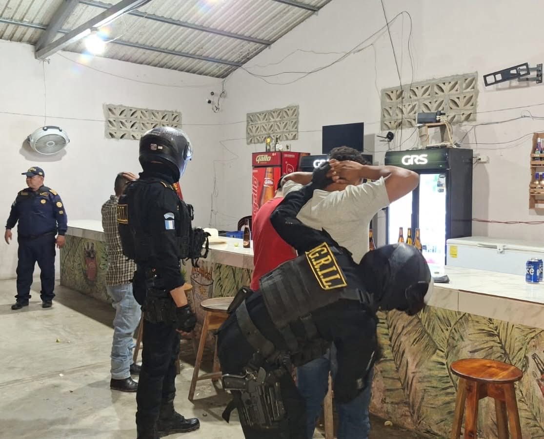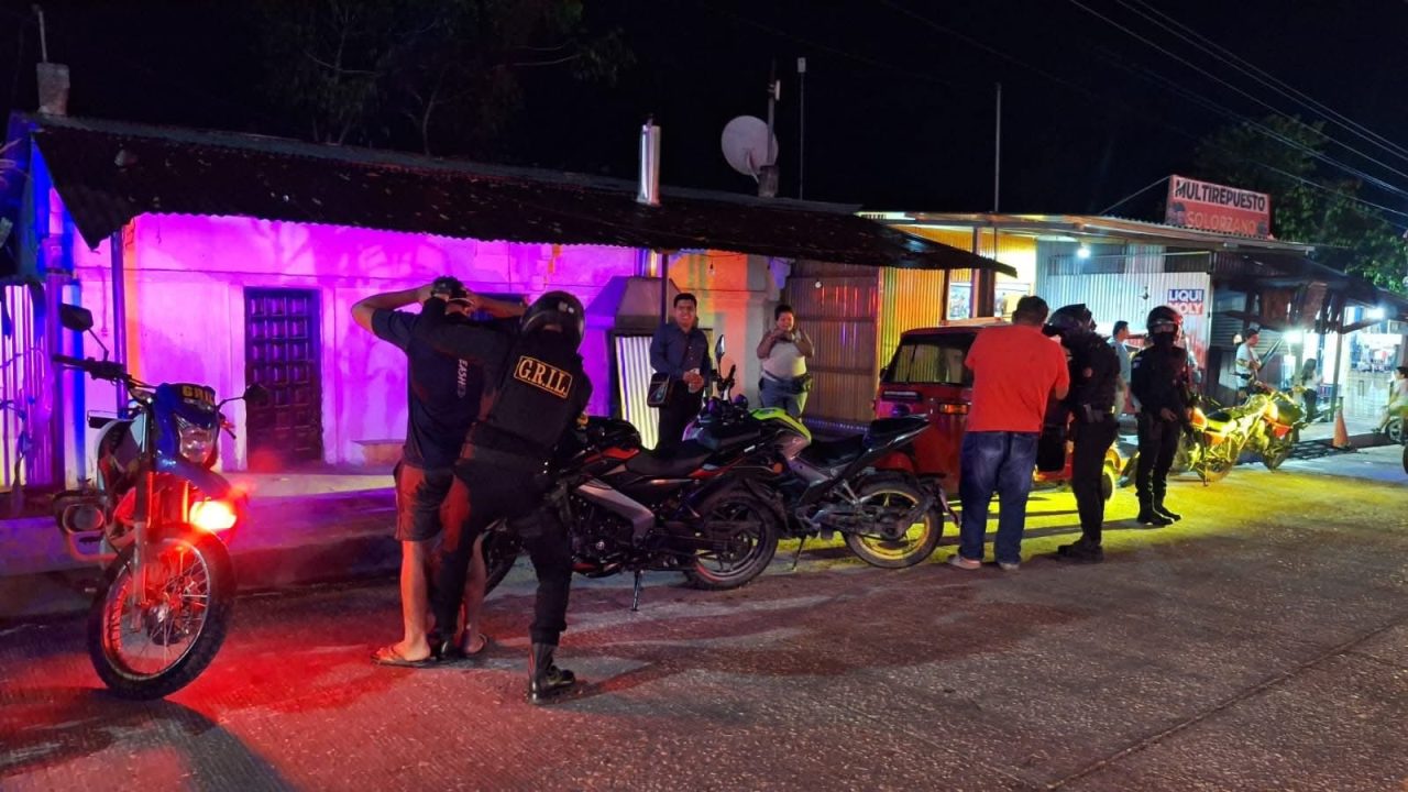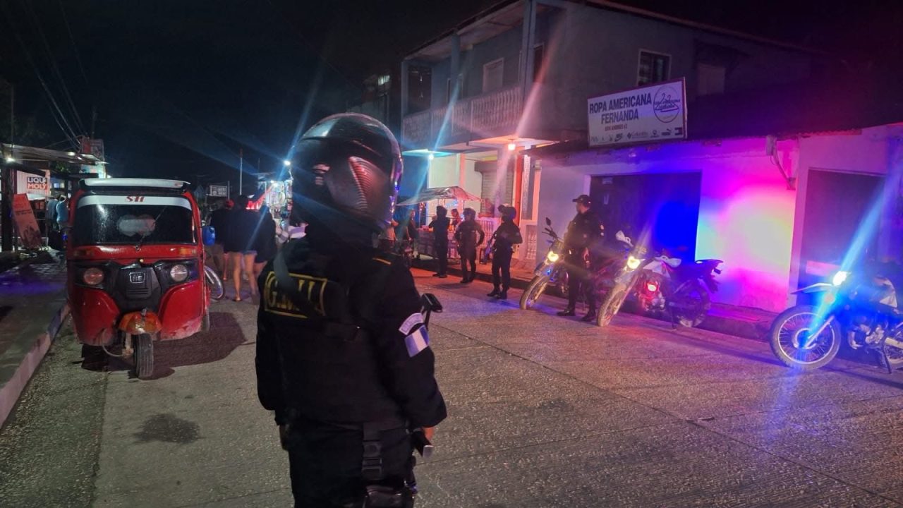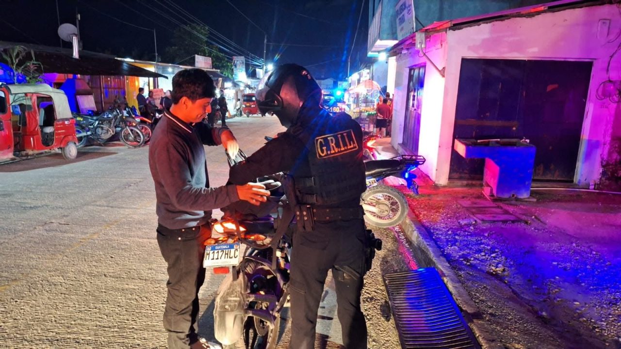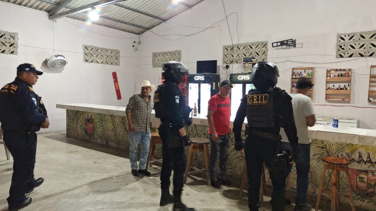Agentes de la Policía Nacional Civil PNC del grupo elite Lobos Grill apoyan esta noche operativos de despistolización en cantinas de San Andrés, Petén, donde se realizan el registro, identificación de personas y vehículos. Estas acciones van encaminadas a prevenir hechos contra la vida e incautar armas de fuego.