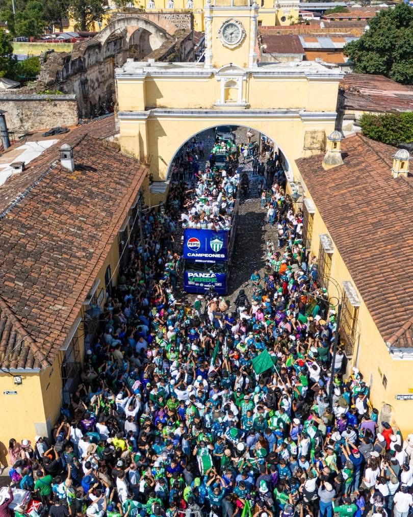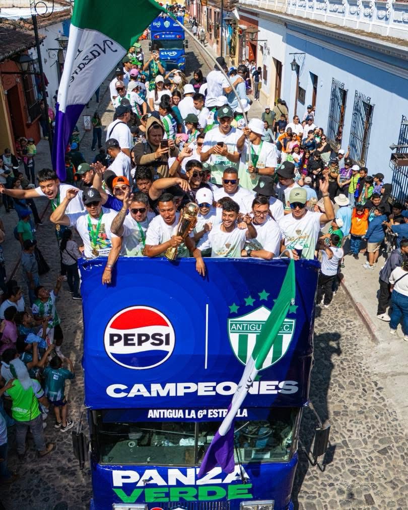 La Antigua Guatemala, símbolo de historia y belleza colonial, hoy vive una jornada distinta. Sus calles empedradas, acostumbradas al paso sereno de locales y turistas, amanecieron teñidas de verde y blanco para celebrar el título del Apertura 2025 que Antigua GFC conquistó ante Municipal en el estadio El Trébol, un triunfo que quedó marcado como un bicampeonato histórico para los aguacateros.