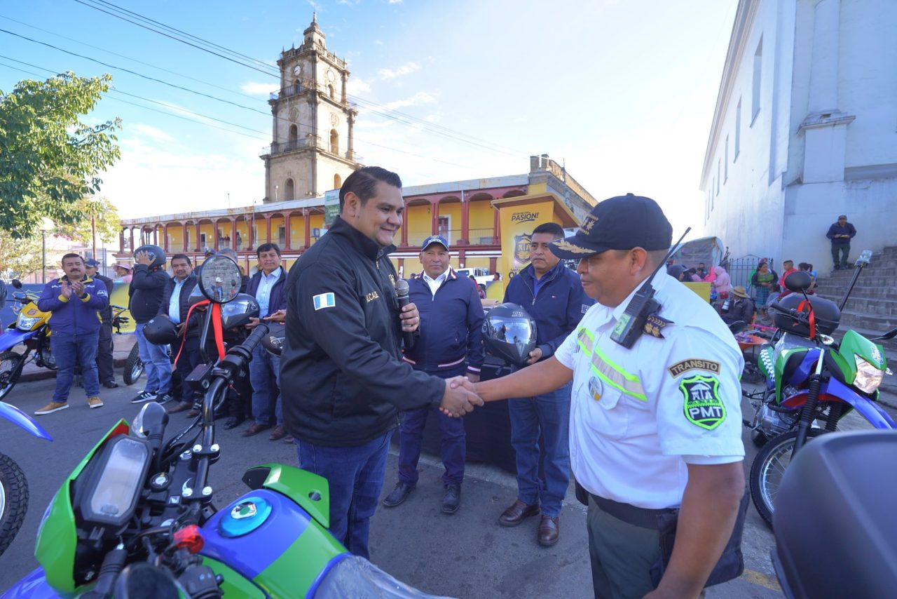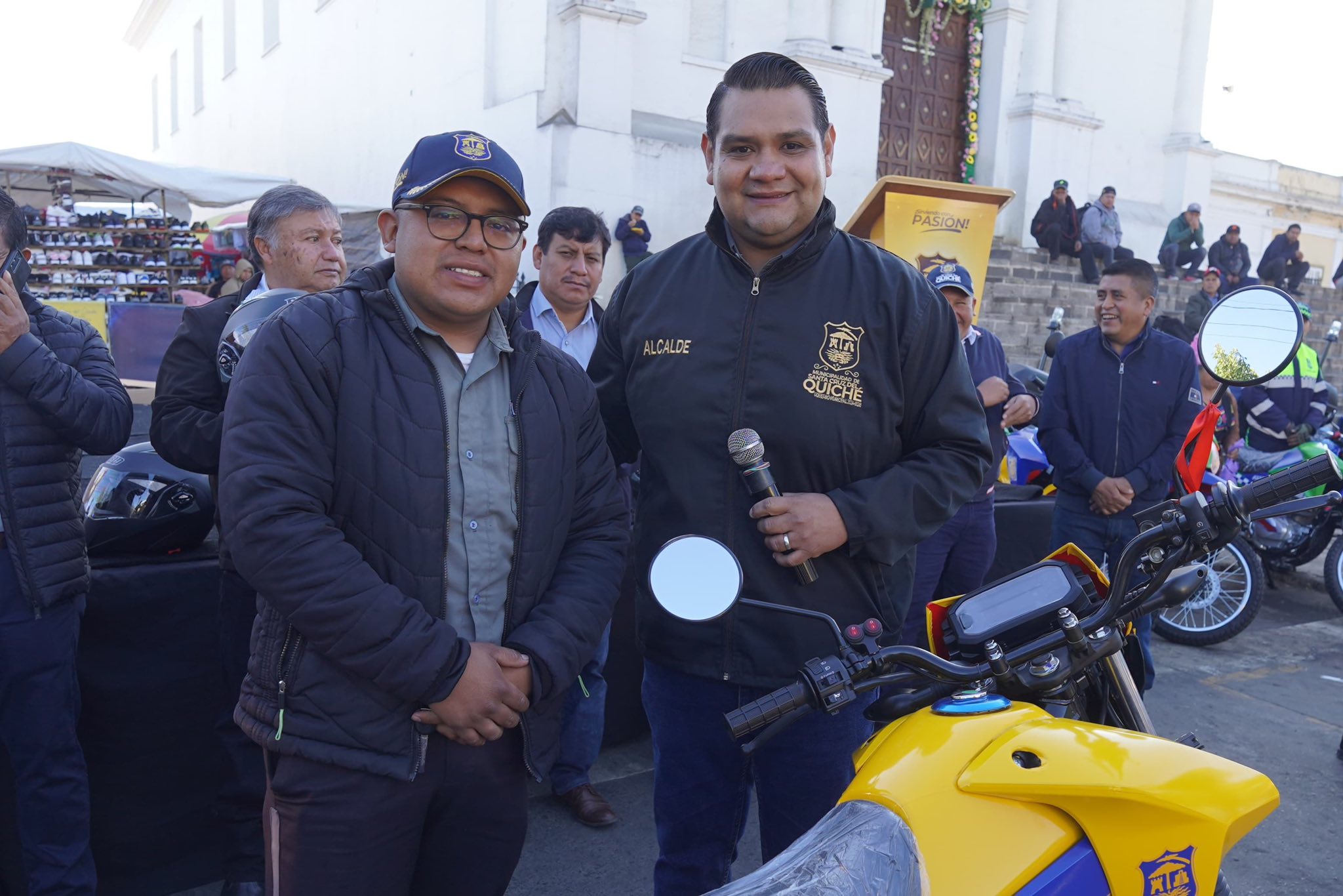 El alcalde de Santa Cruz del Quiché Nery Ramírez entrega motos nuevas al equipo municipal para mejorar el servicio hacia los vecinos del municipio.